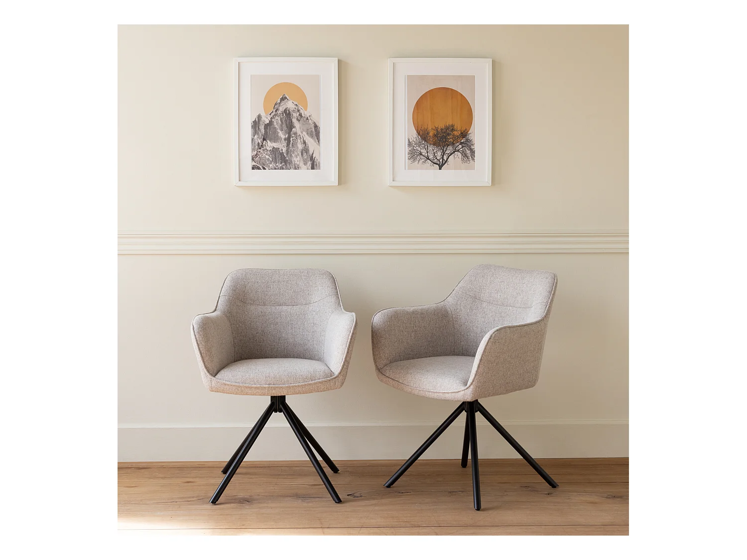 Stoelset van 2 - stof & zwart metaal - lichtgrijs - JANSON