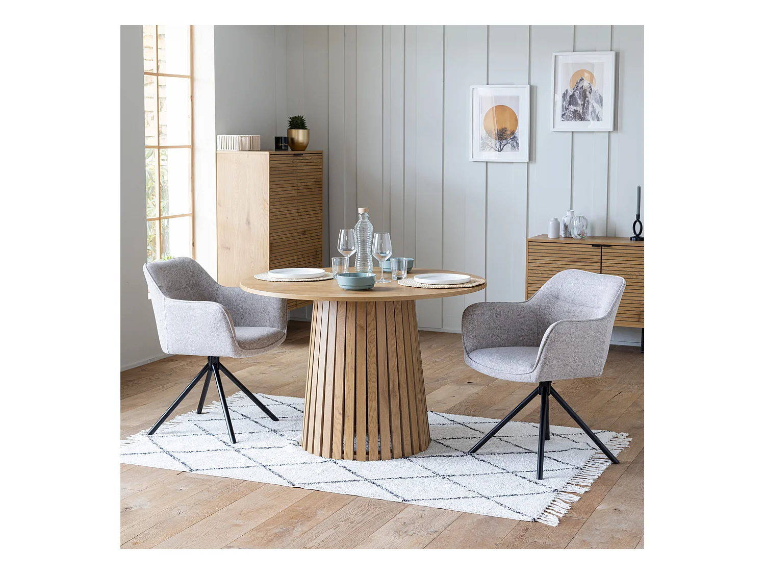 Ronde eettafel 80cm Jubi Beton Grijs | Essenhouten poot