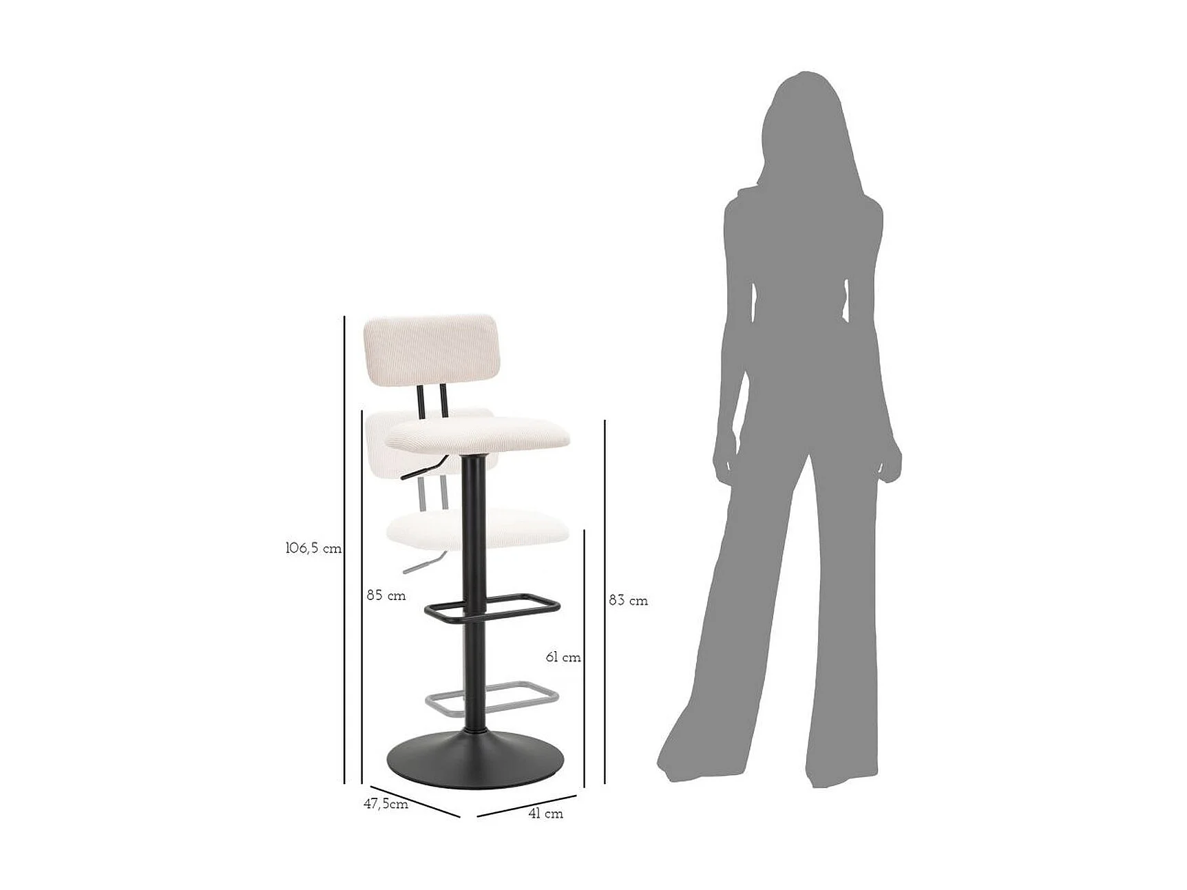 Set van 2 Hoge Krukken VKH446, Wit, 41x47,5x85 cm, Kendra Home