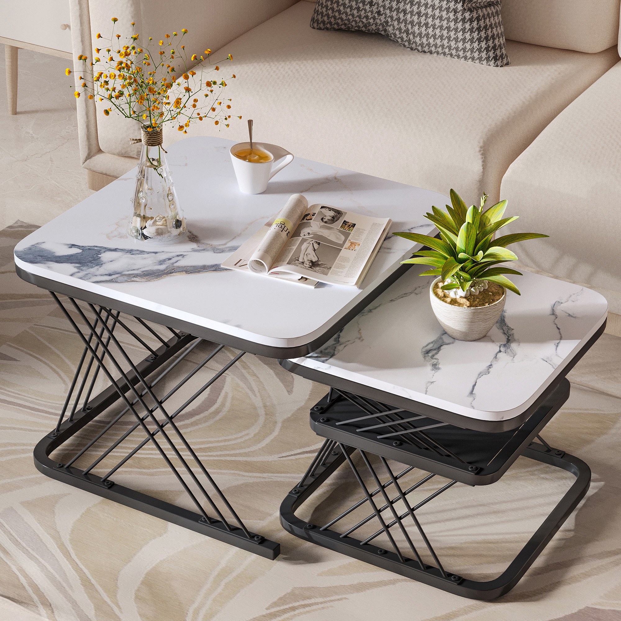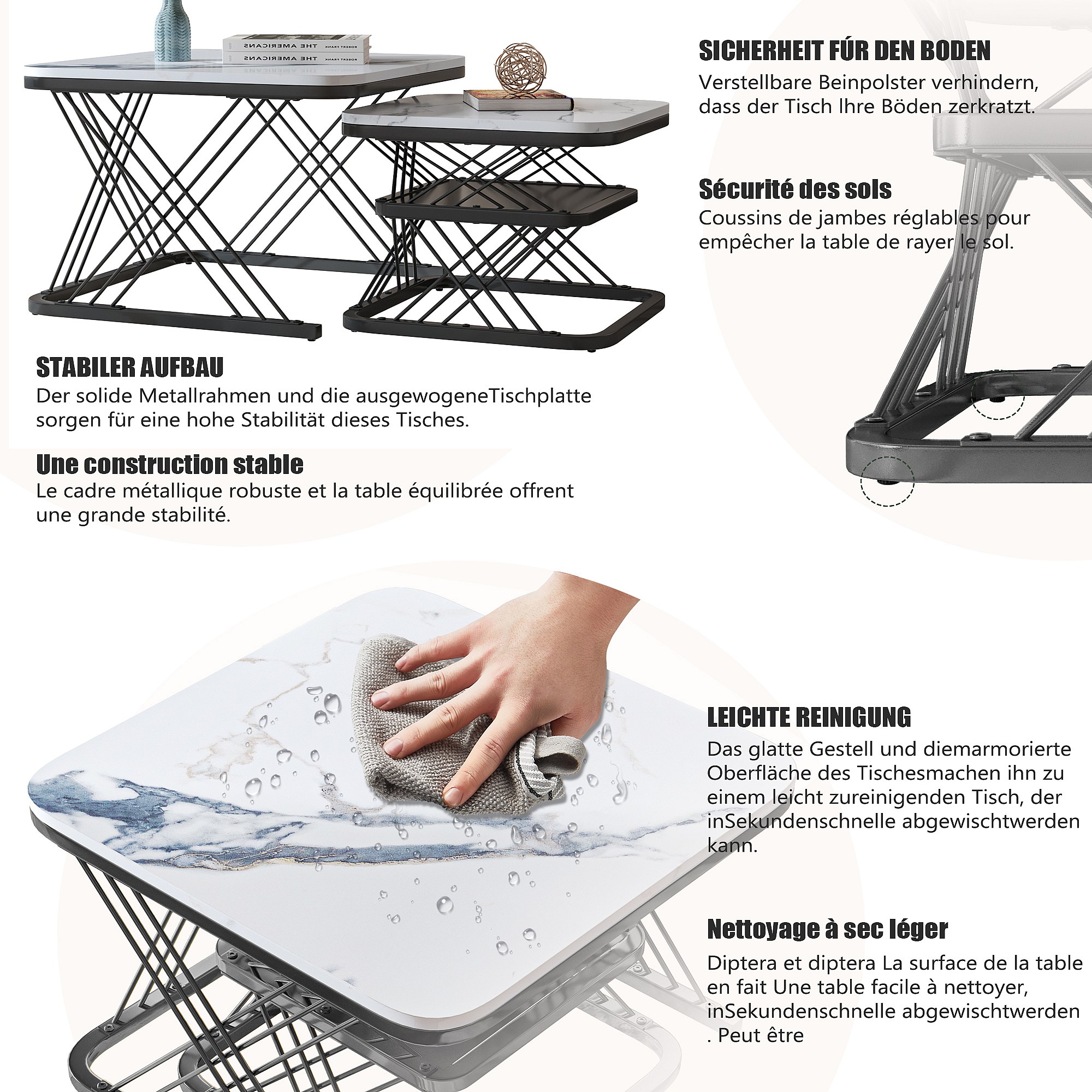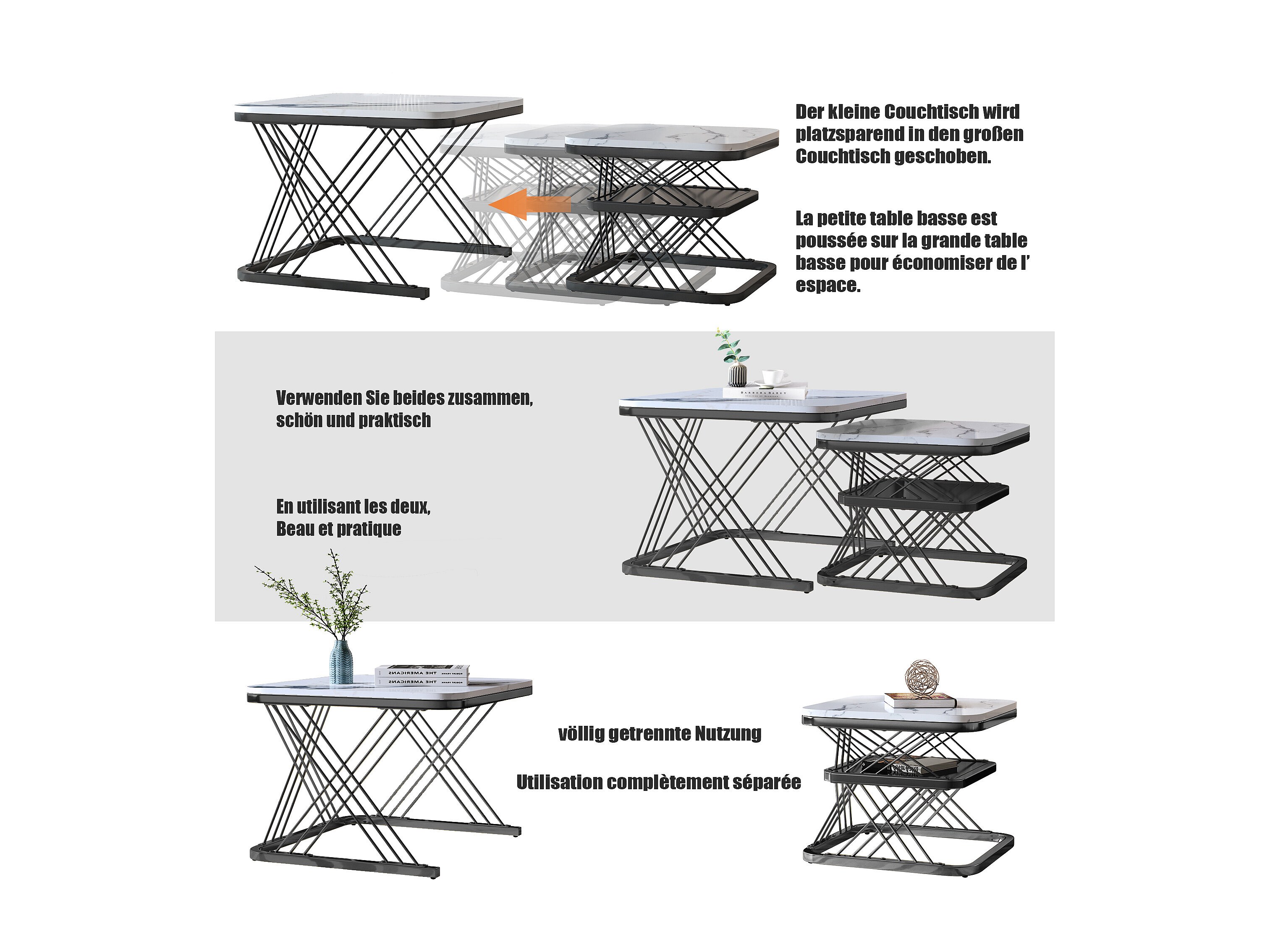 Set van 2 in elkaar passende salontafels, vierkante bijzettafel, zwart