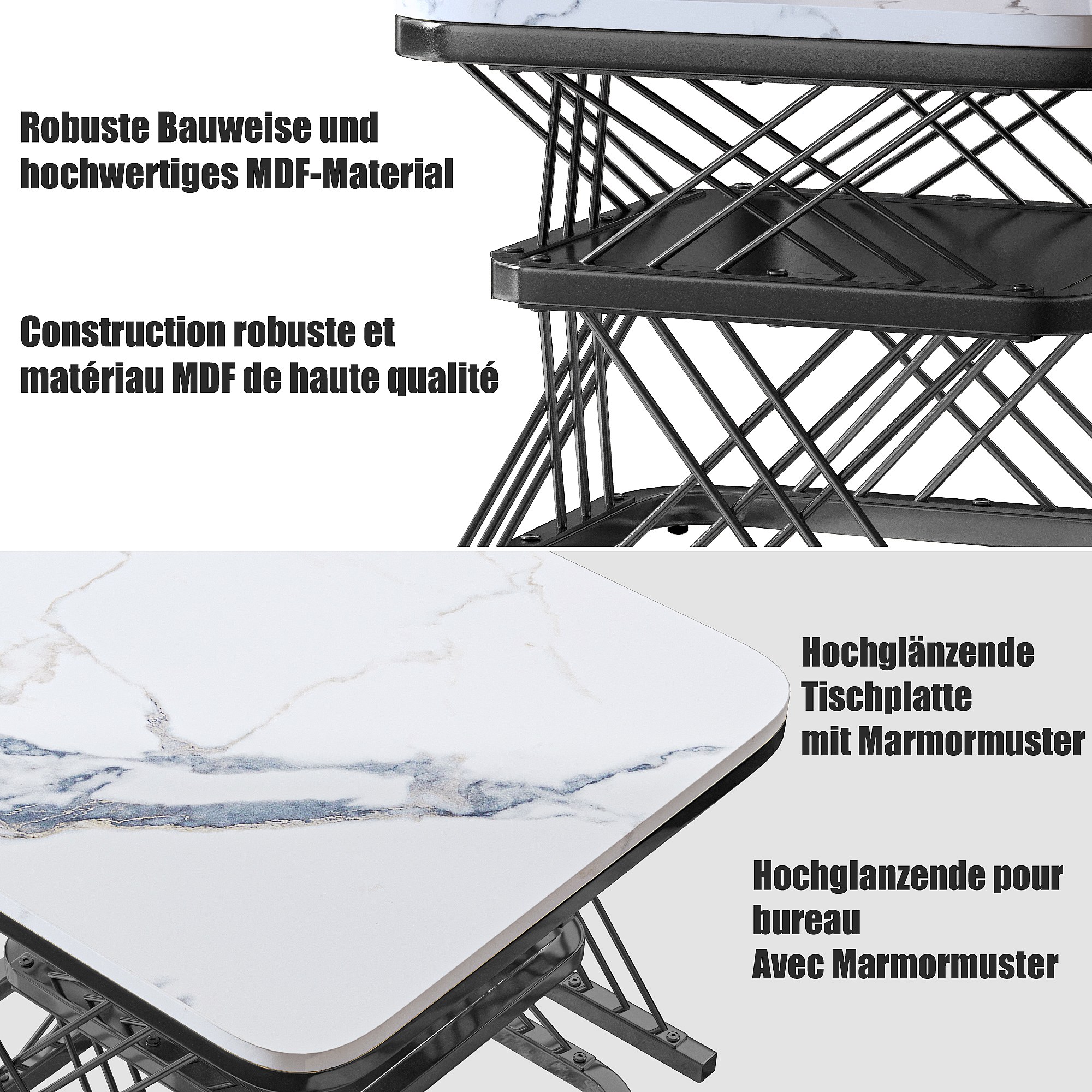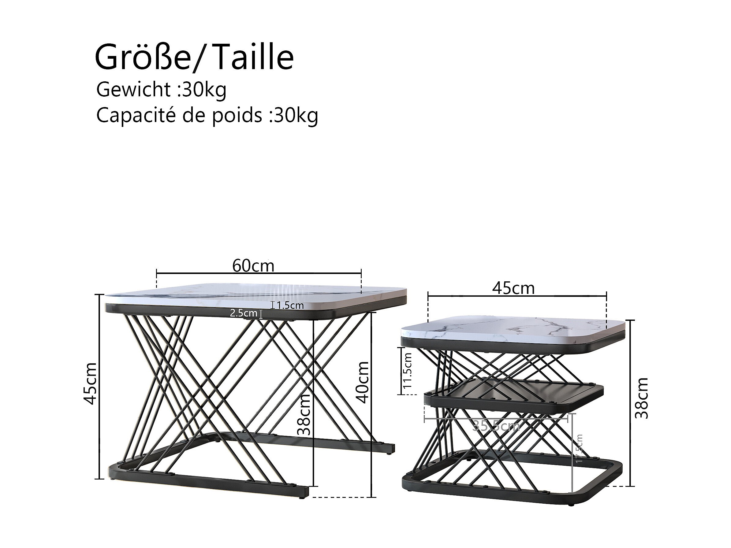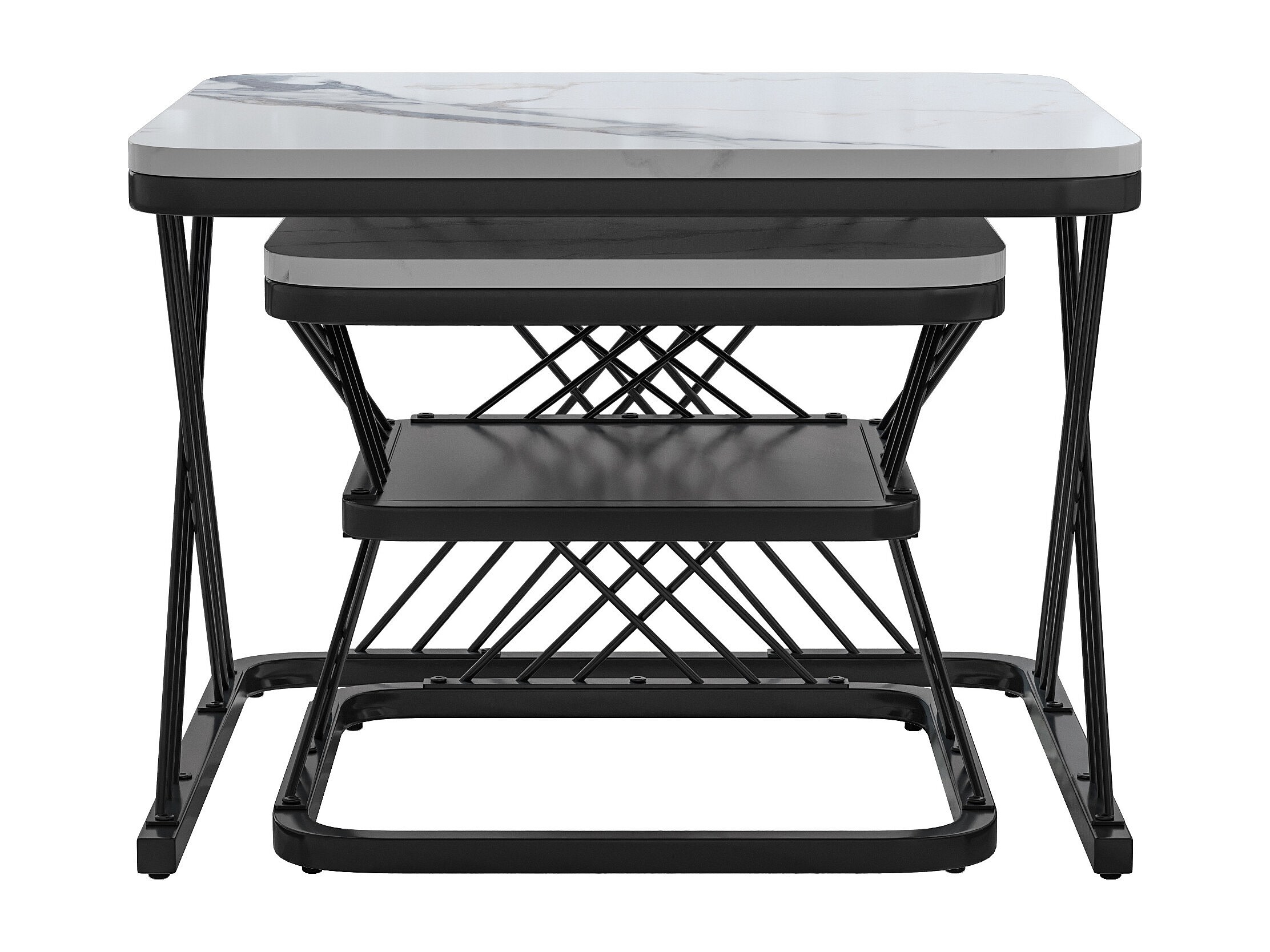 Set van 2 in elkaar passende salontafels, vierkante bijzettafel, zwart