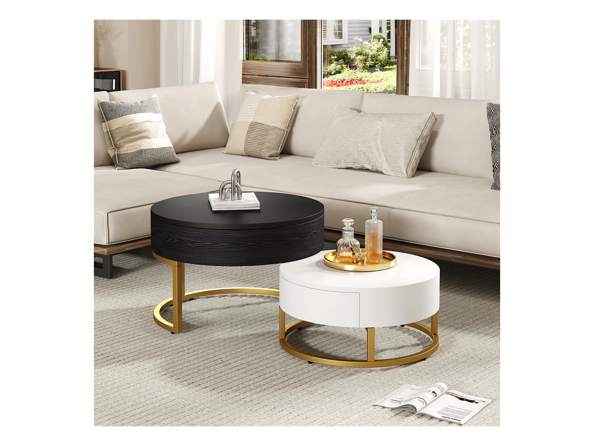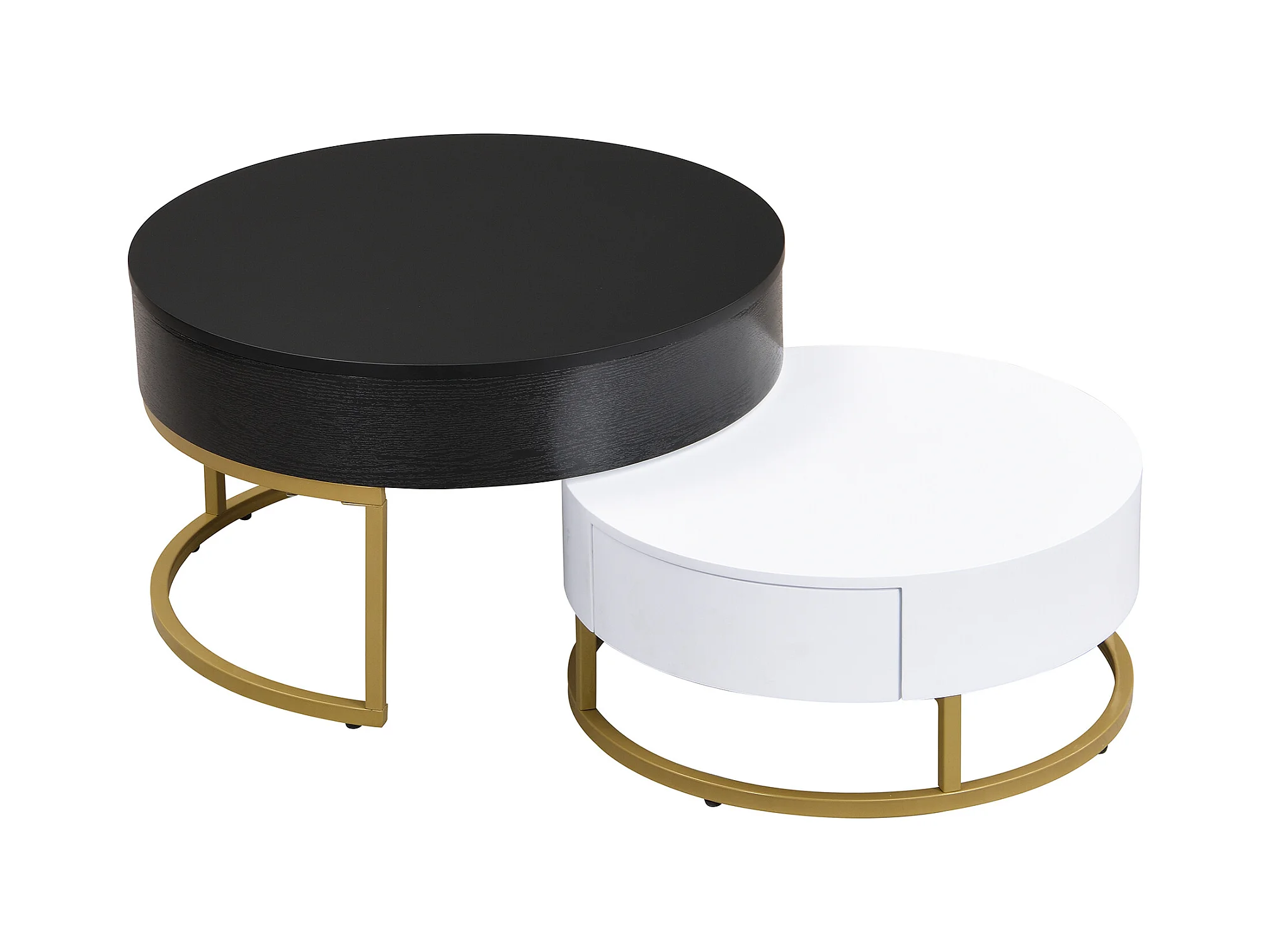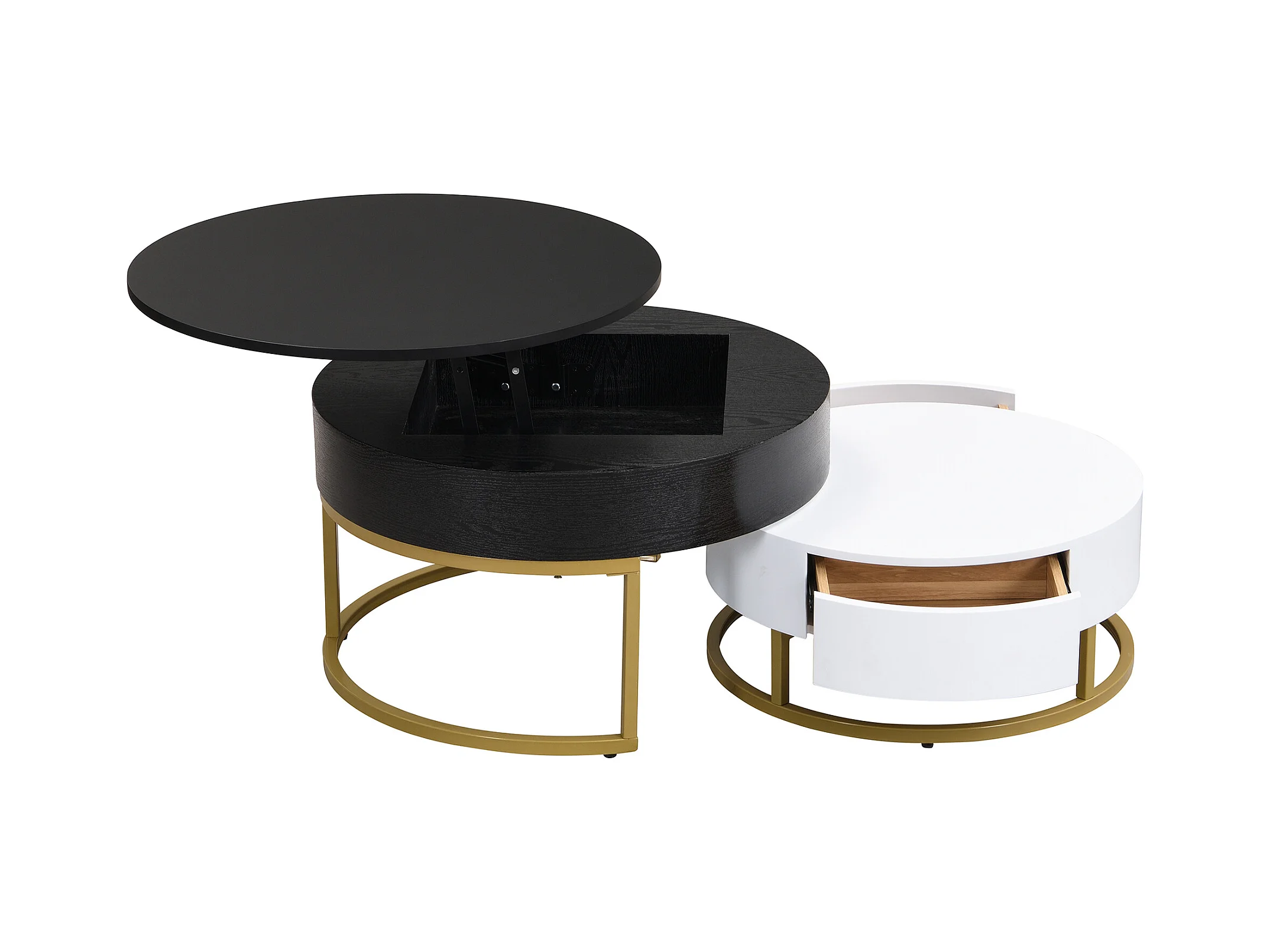 Set van 2 in elkaar passende salontafels, grote tafel met opklapbaar blad, kleine tafel met 2 lades, MDF, zwart