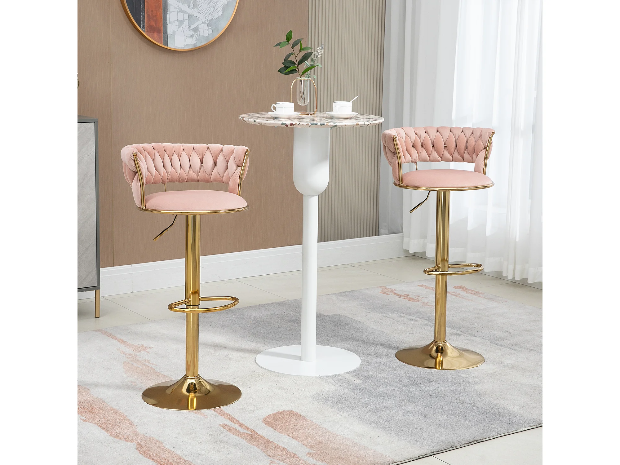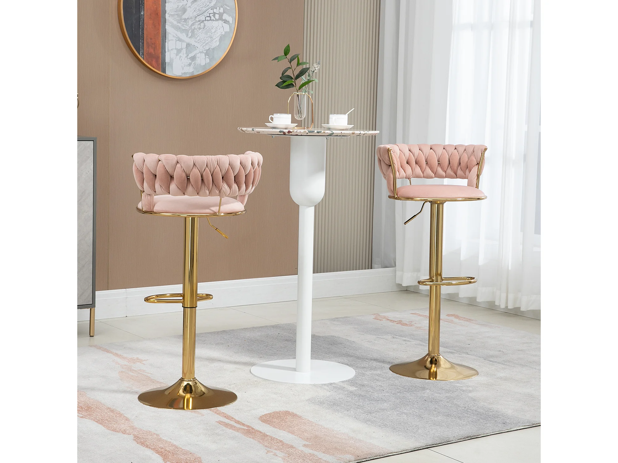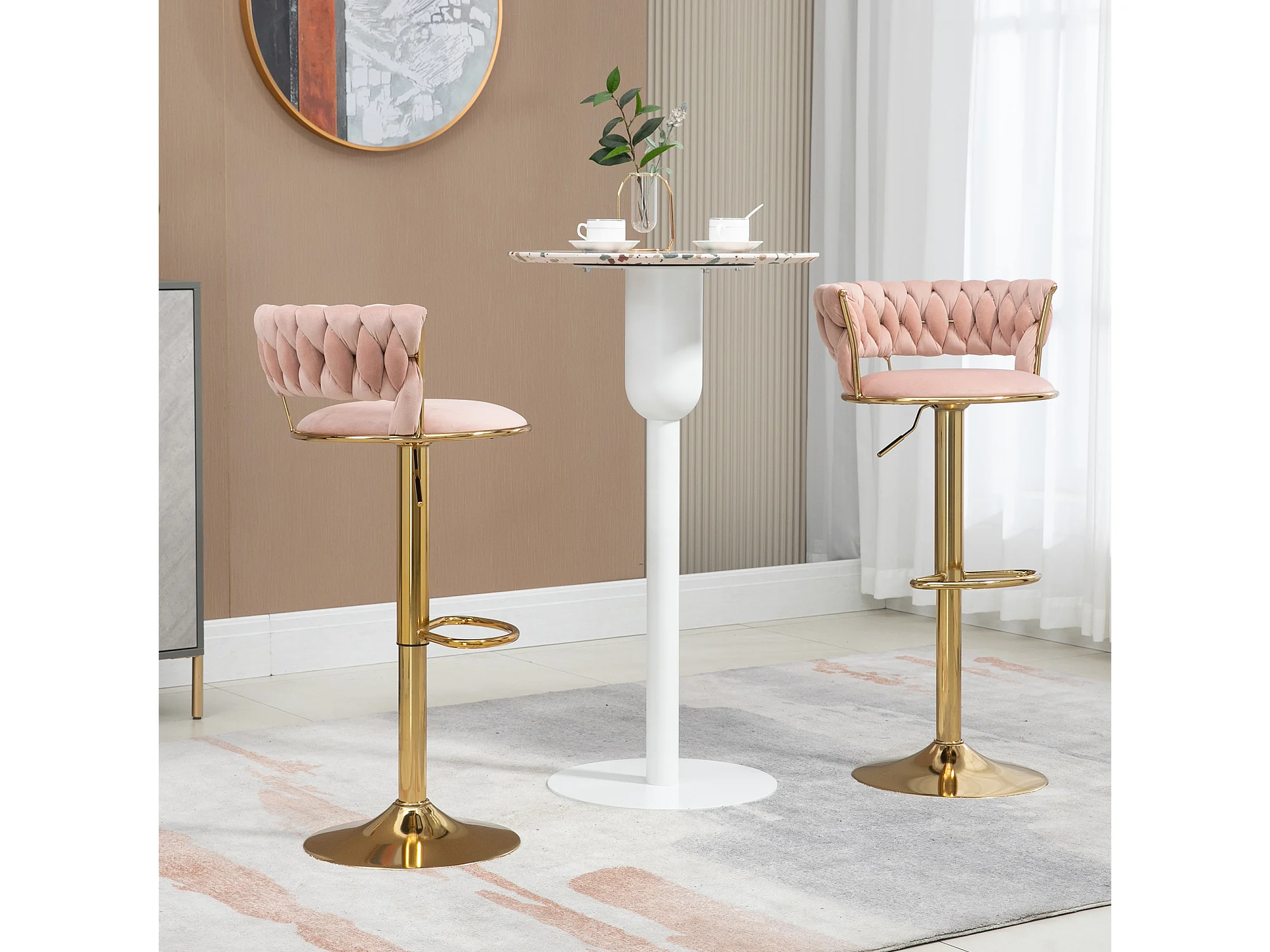Set van 2 in hoogte verstelbare draaibare barkrukken met rust