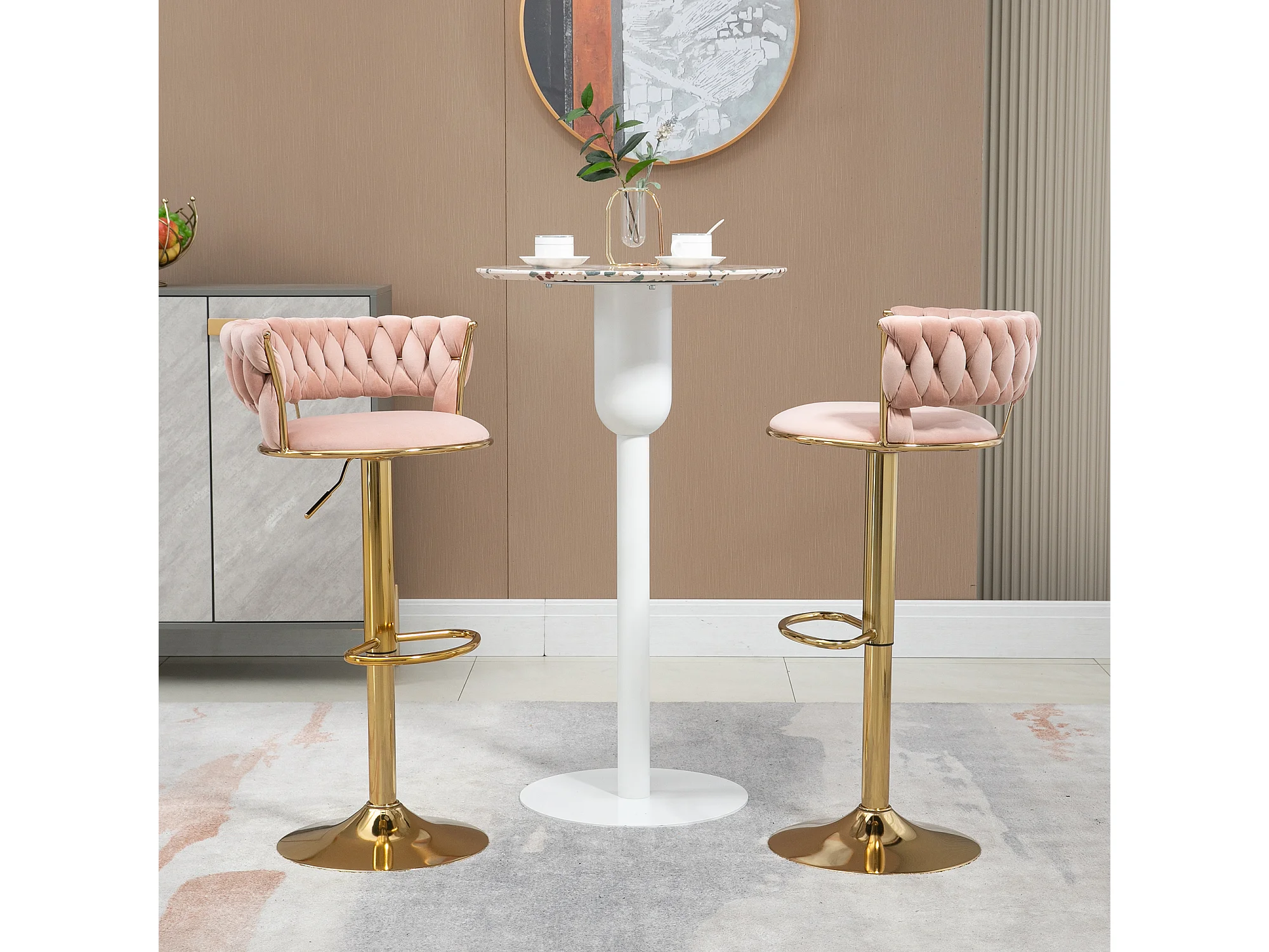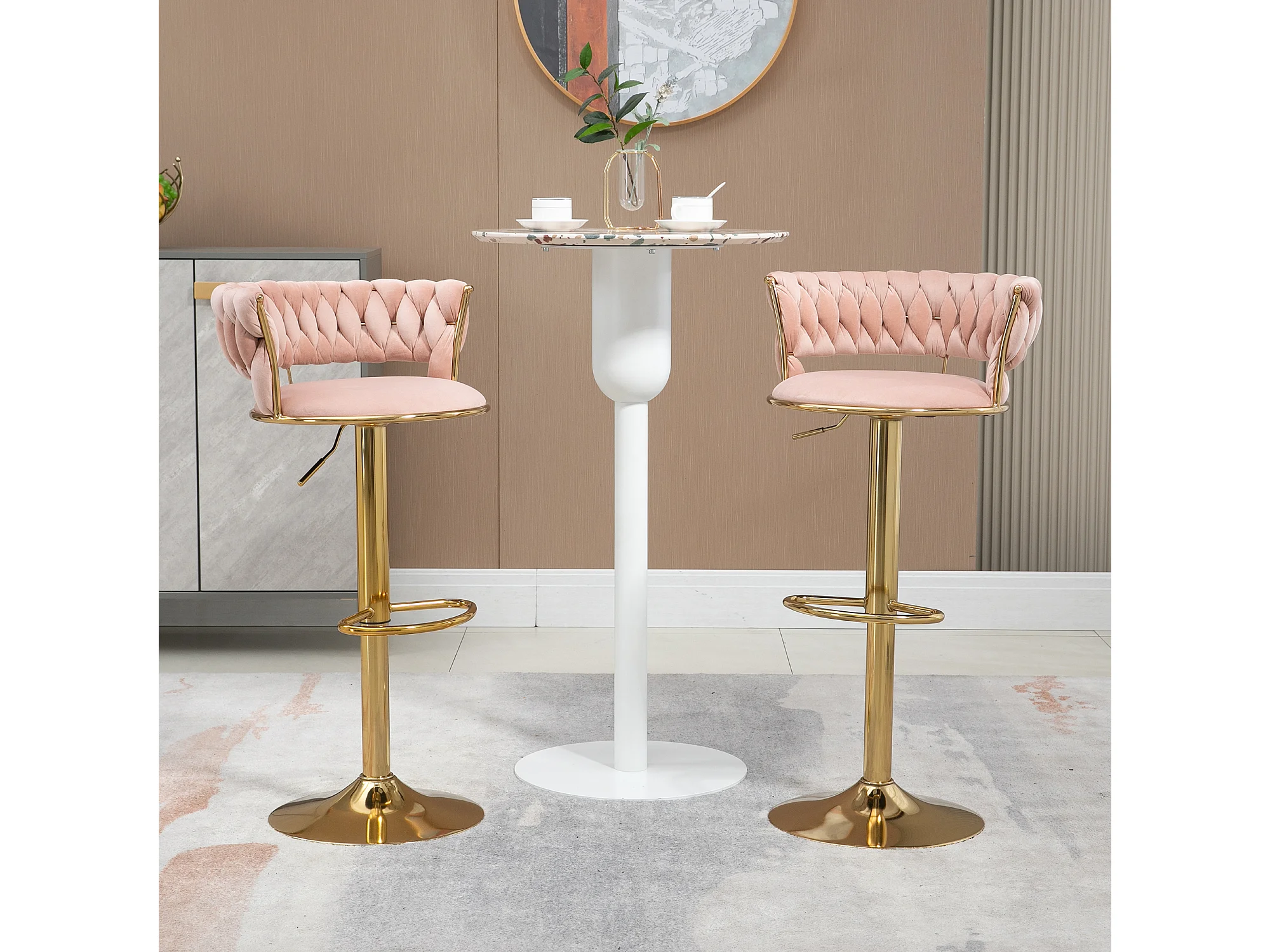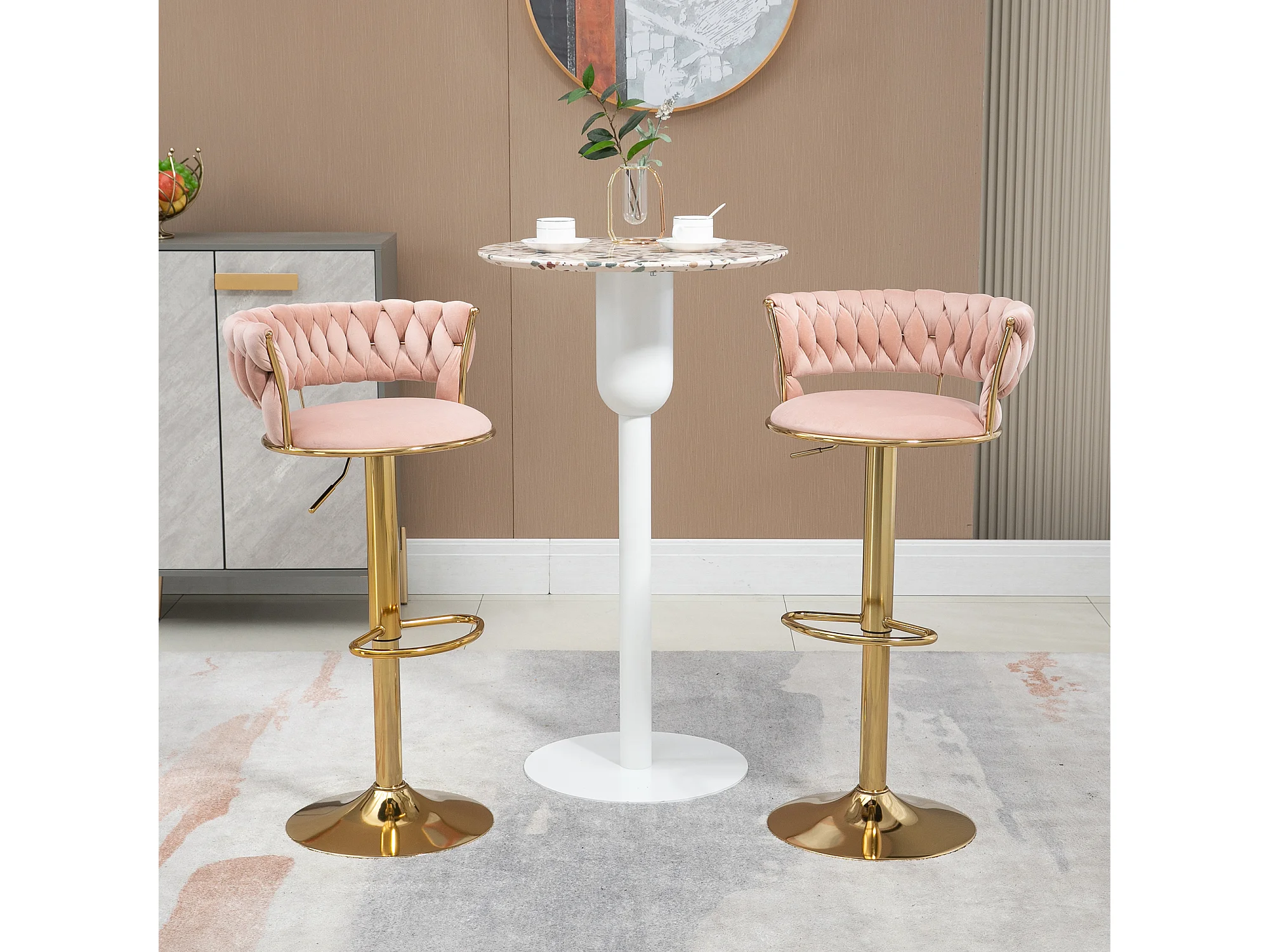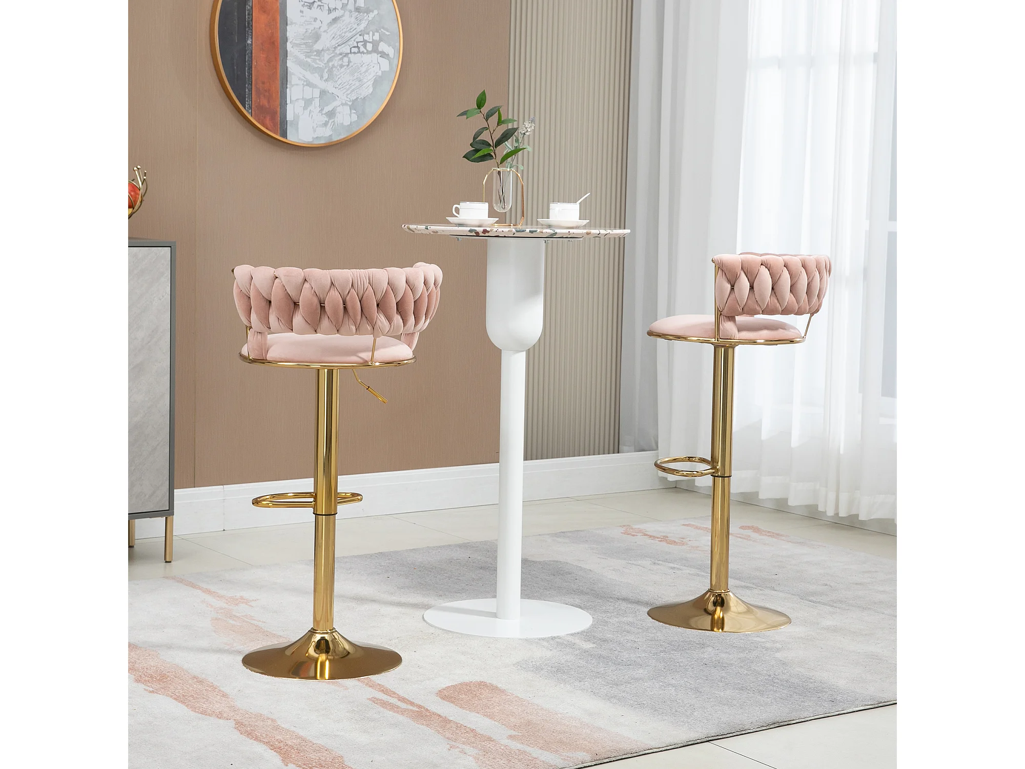 Set van 2 in hoogte verstelbare draaibare barkrukken met rust