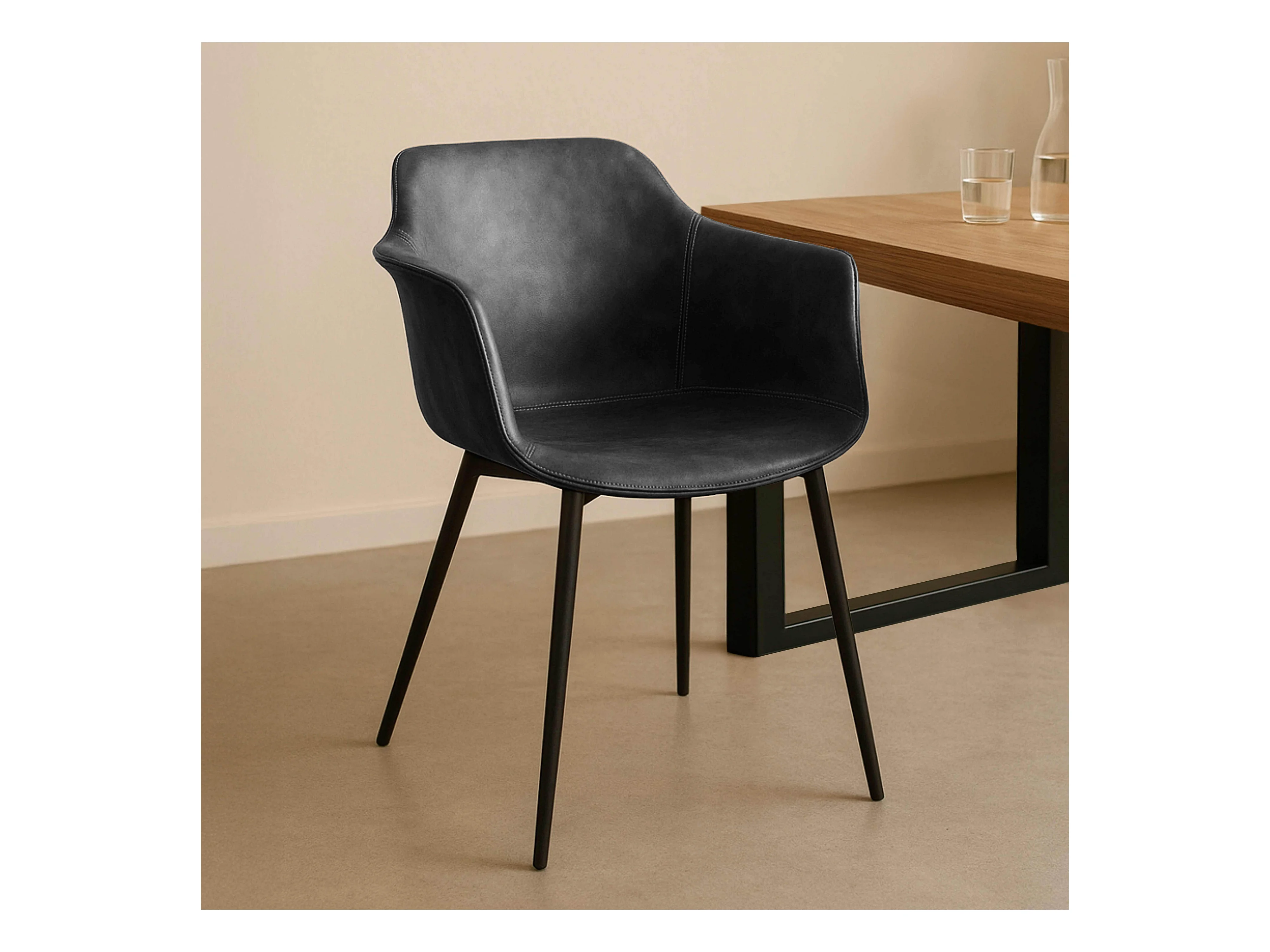Moderne stoel met armleuningen in polypropyleen en metaal Kova-Kleur Zwart