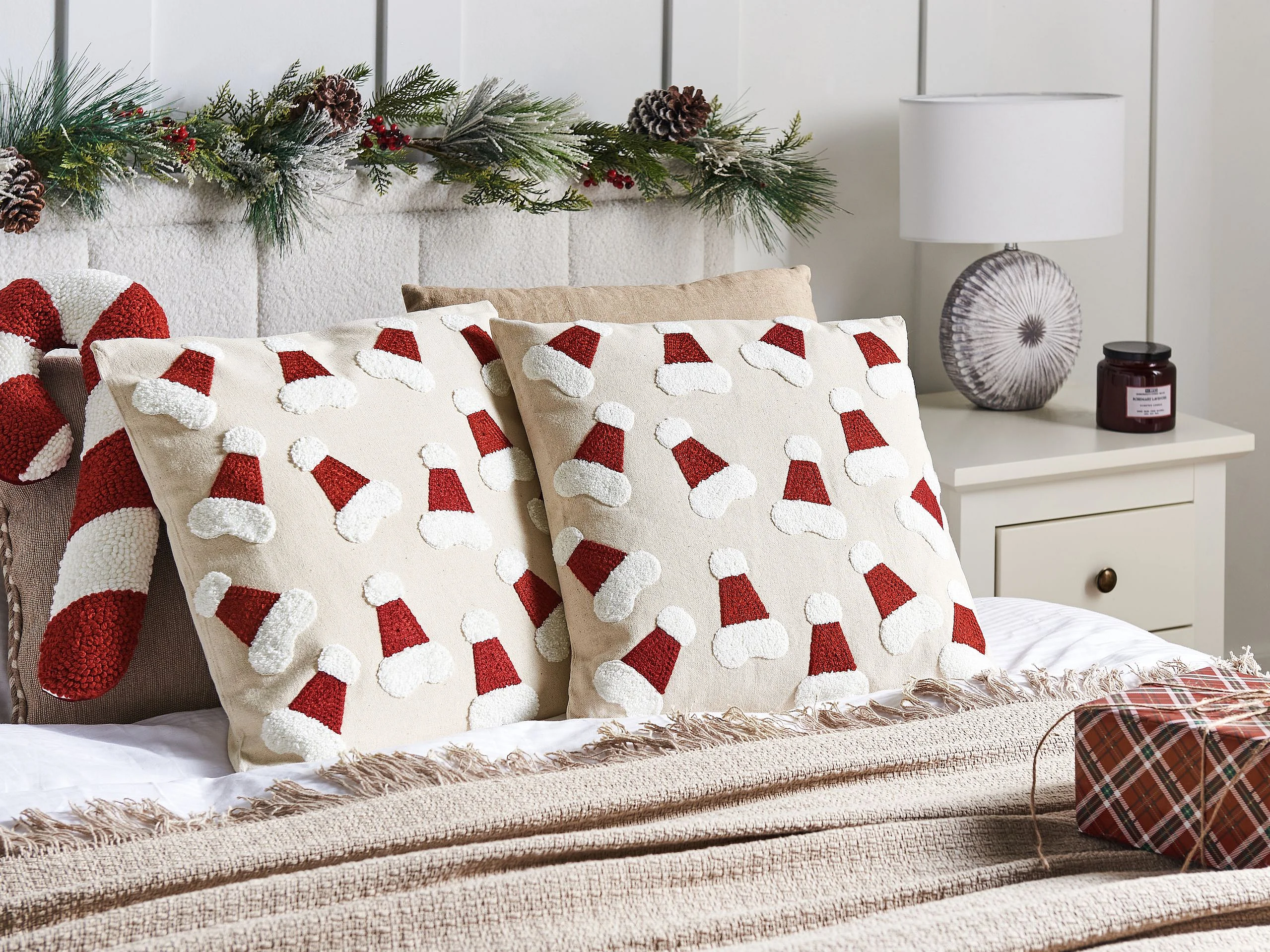 Set van 2 decoratieve kussens SUGARPLUM Katoen 45 x 45 cm Lichtbeige Kerst patroon