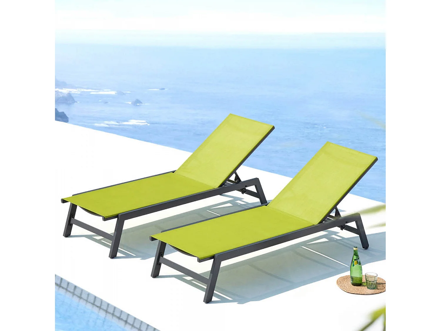 Set van 2 ligstoelen in donkergrijs & groen PRATO met wieltjes voor buiten