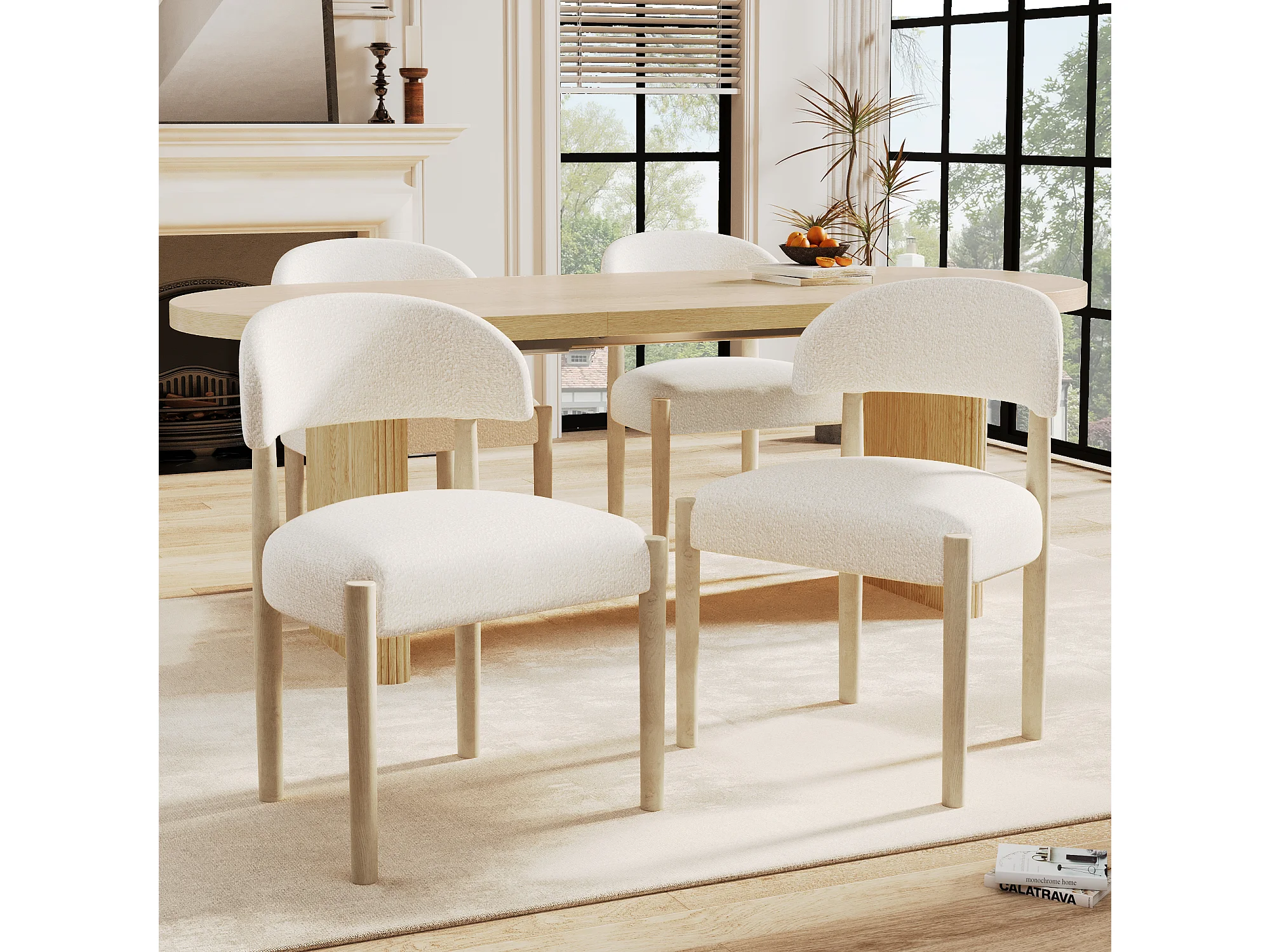 Set van 2 massief houten eetkamerstoelen - 58 x 58 x 78 cm - moderne stijl - ademend - gekrulde afwerking - naturel