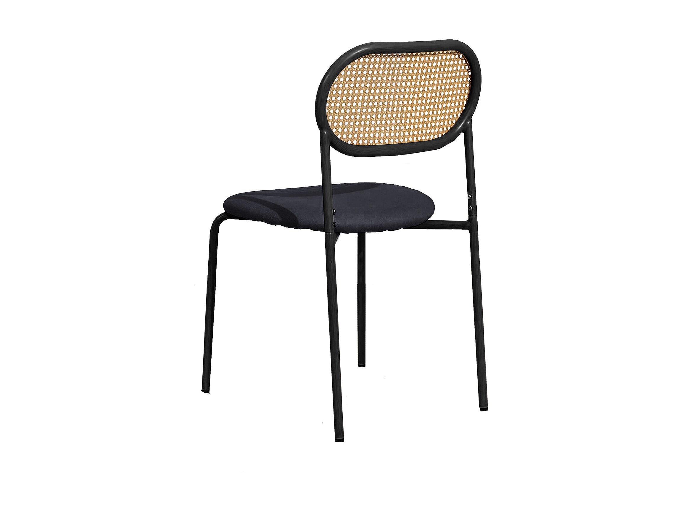 Set van 2 moderne keukenstoelen met rotan rugleuning, metalen poten, zwart