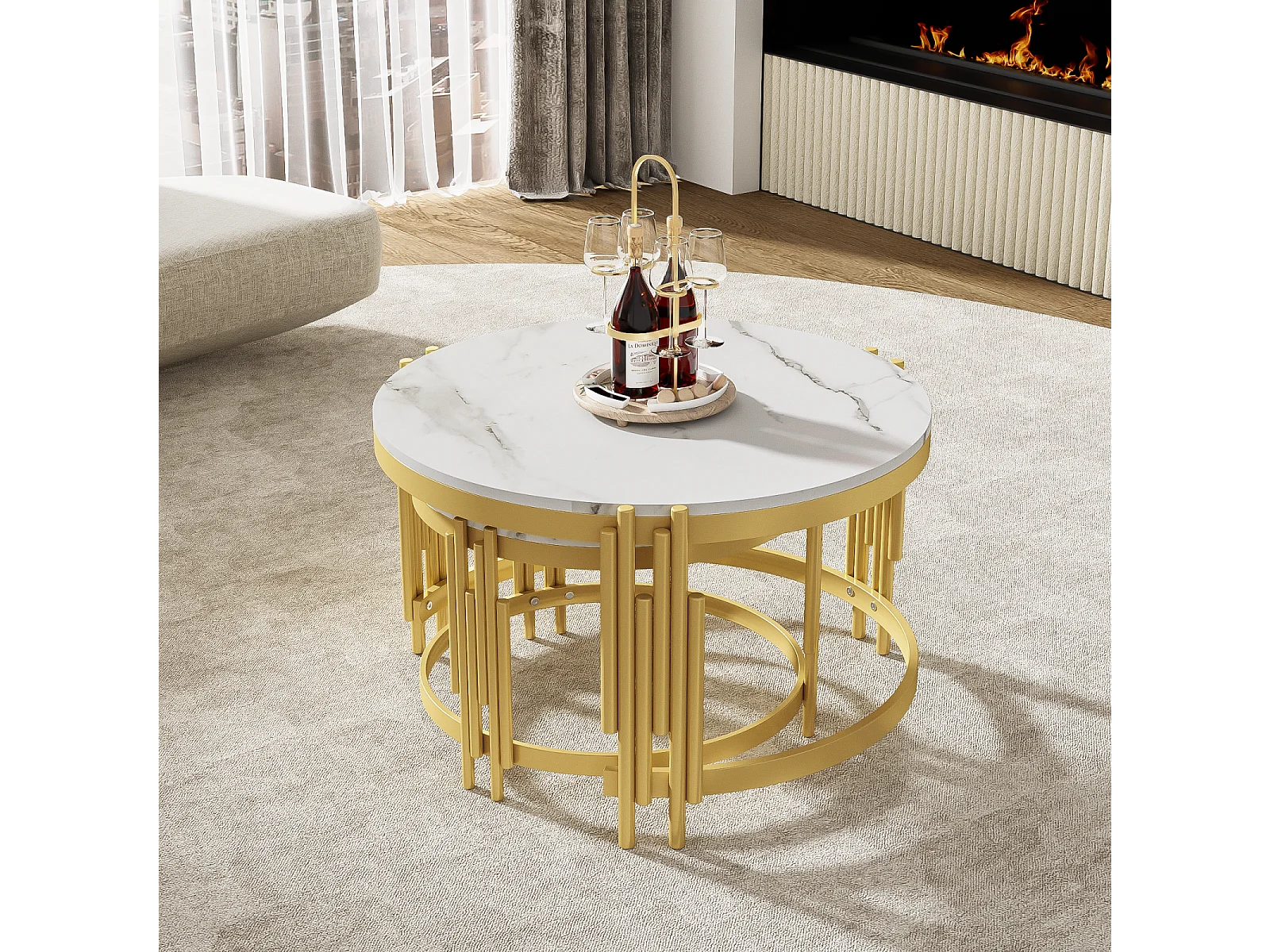 Set van 2 moderne witte salontafels en bijzettafels met gouden metalen frames
