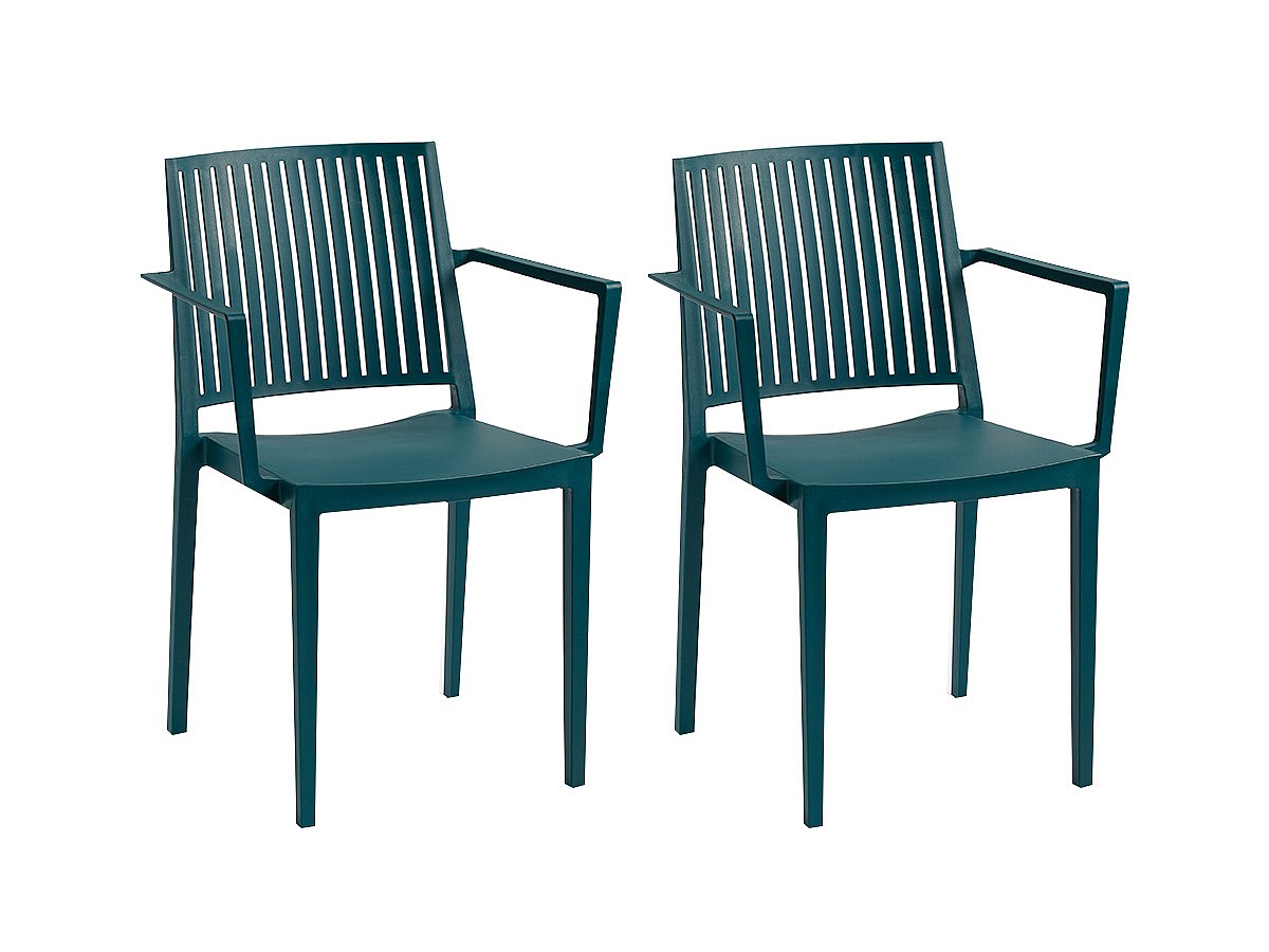 Set van 2 opstapelbare stoelen BAIA met armleuningen - Polypropyleen - Blauw
