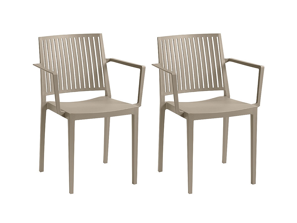 Set van 2 opstapelbare stoelen BAIA met armleuningen - Polypropyleen - Taupe