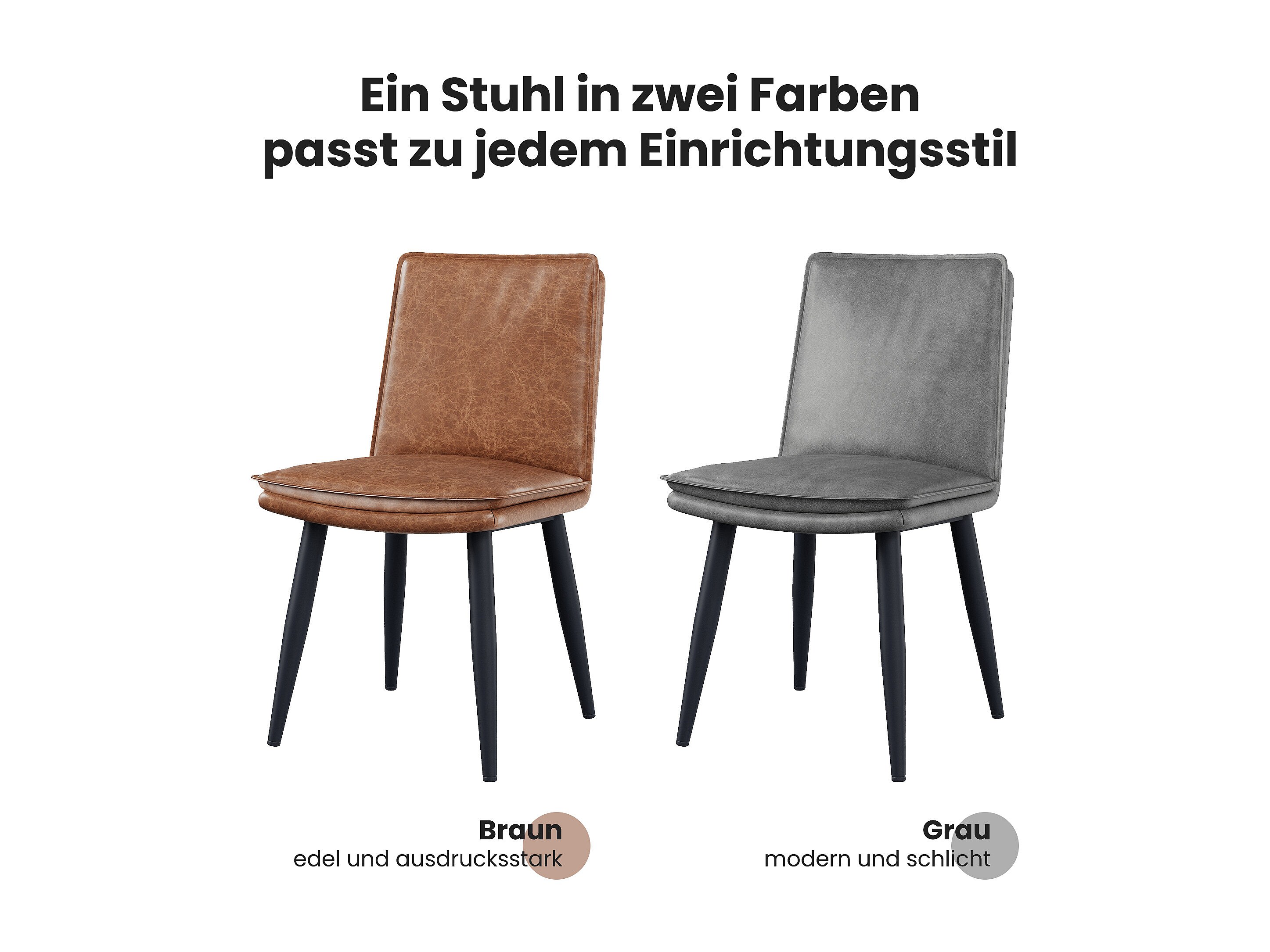 Set van 2 PU eetkamerstoelen - dubbele laag kussens - 49 x 57 x 84 cm - PU - grijs