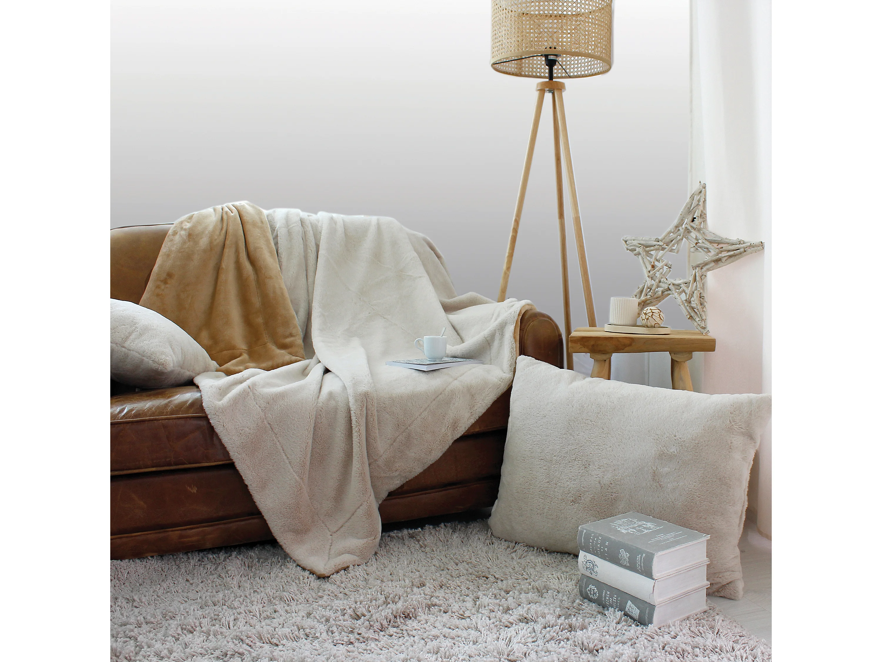 Set van 2 rechthoekige kussens, dubbelzijdig imitatiebont, 65x50cm, beige, Rabbit collectie