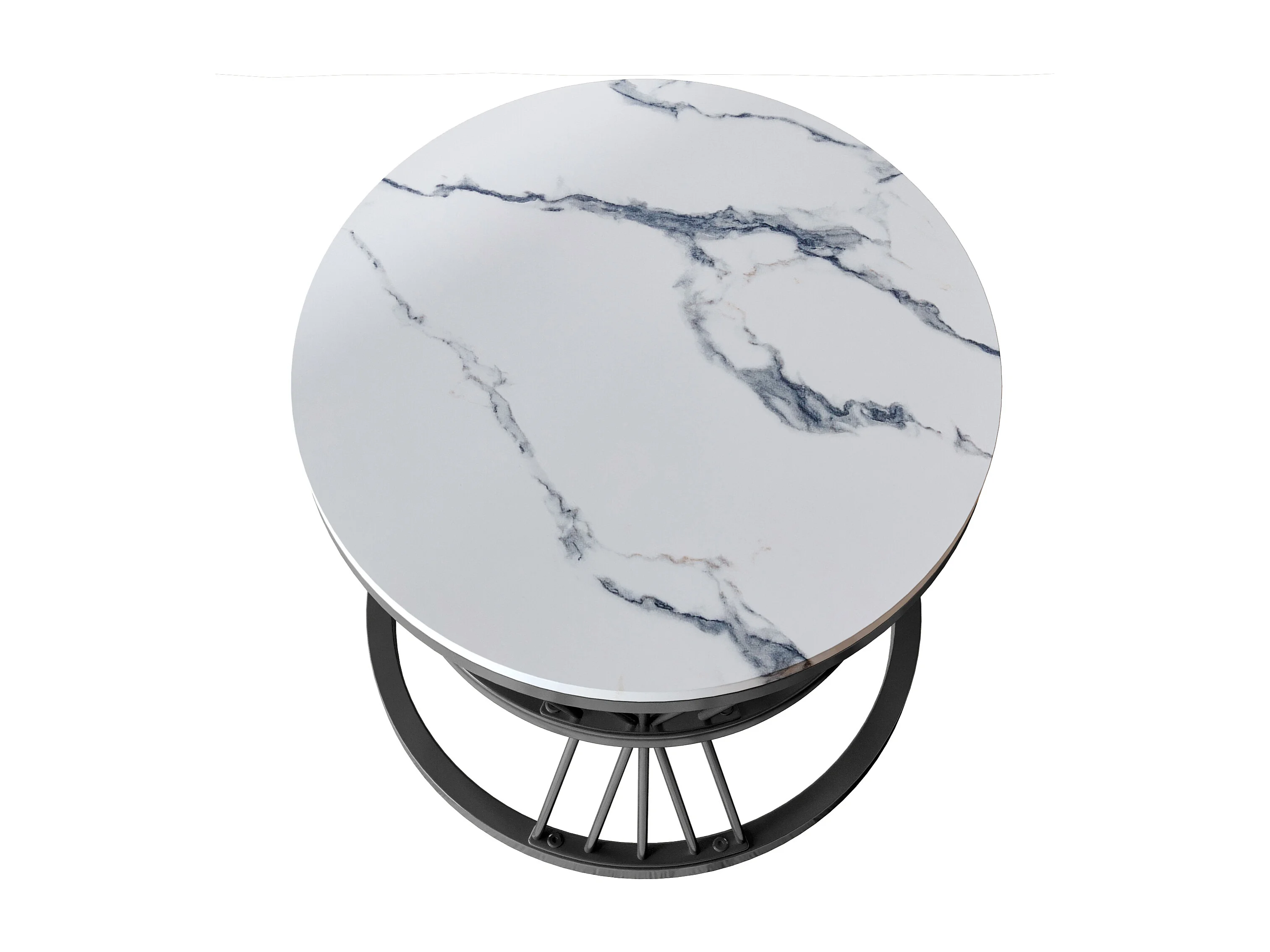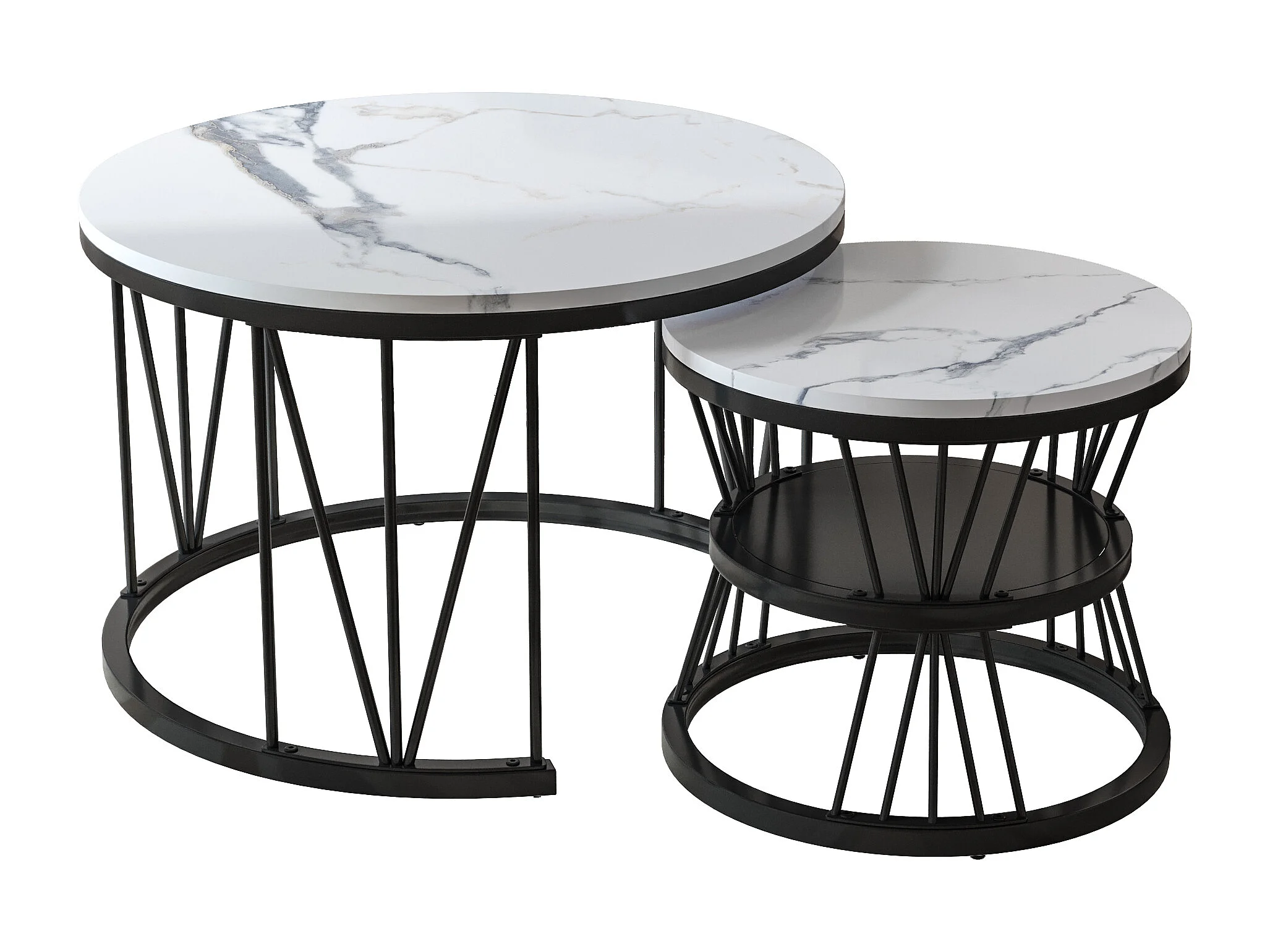Set van 2 ronde salontafels met marmerlook en metalen frame - Bijzettafels voor de woonkamer, zwart