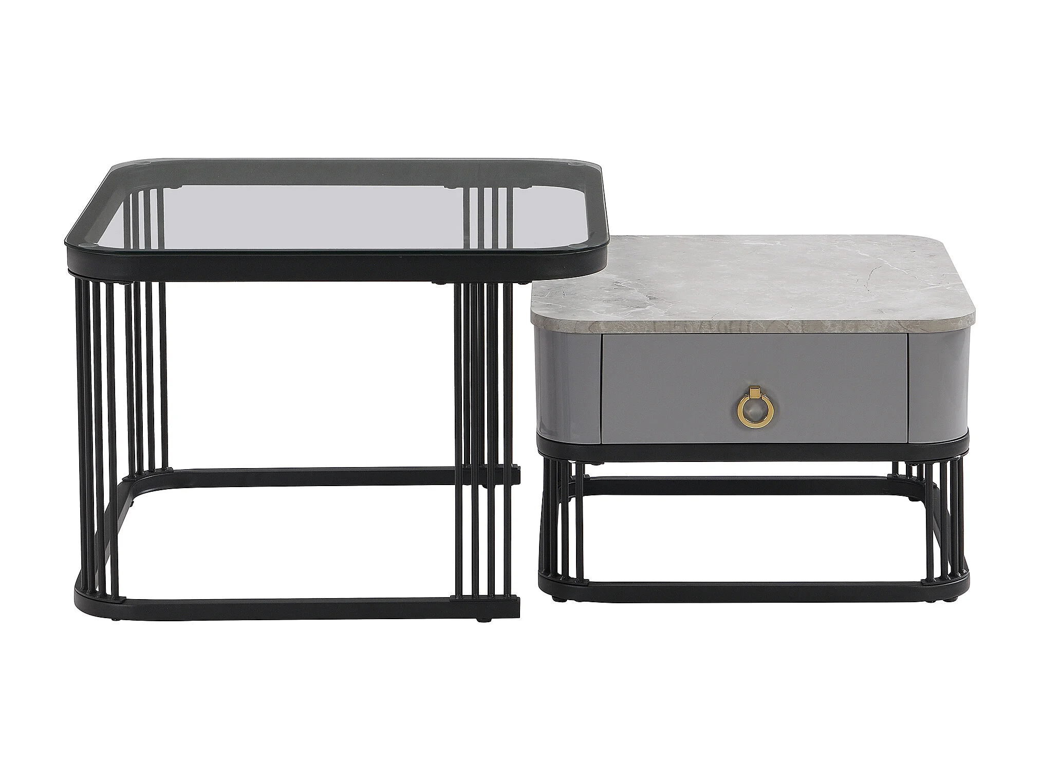 Set van 2 salontafels 60x60x42 cm met grote en kleine tafeltjes en lades MDF materiaal in zwart voor woonkamer