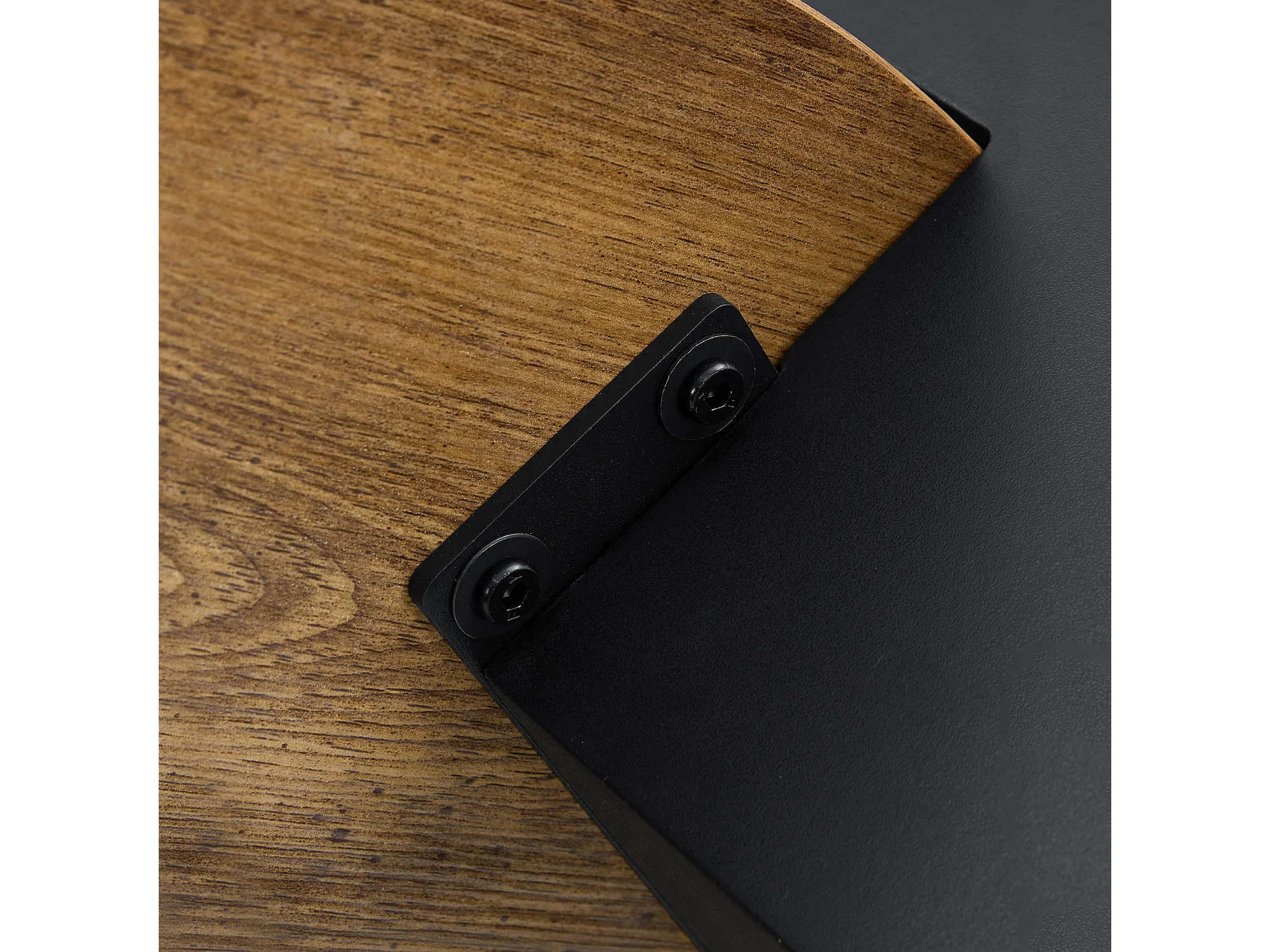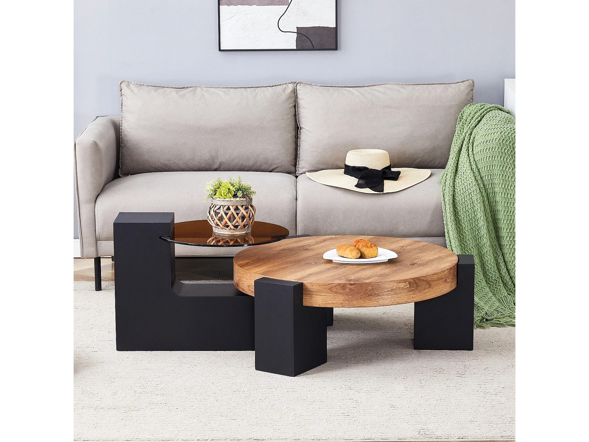 Set van 2 salontafels - Ronde tafels met houtnerfstructuur - MDF-hout + glas - Hout en zwart