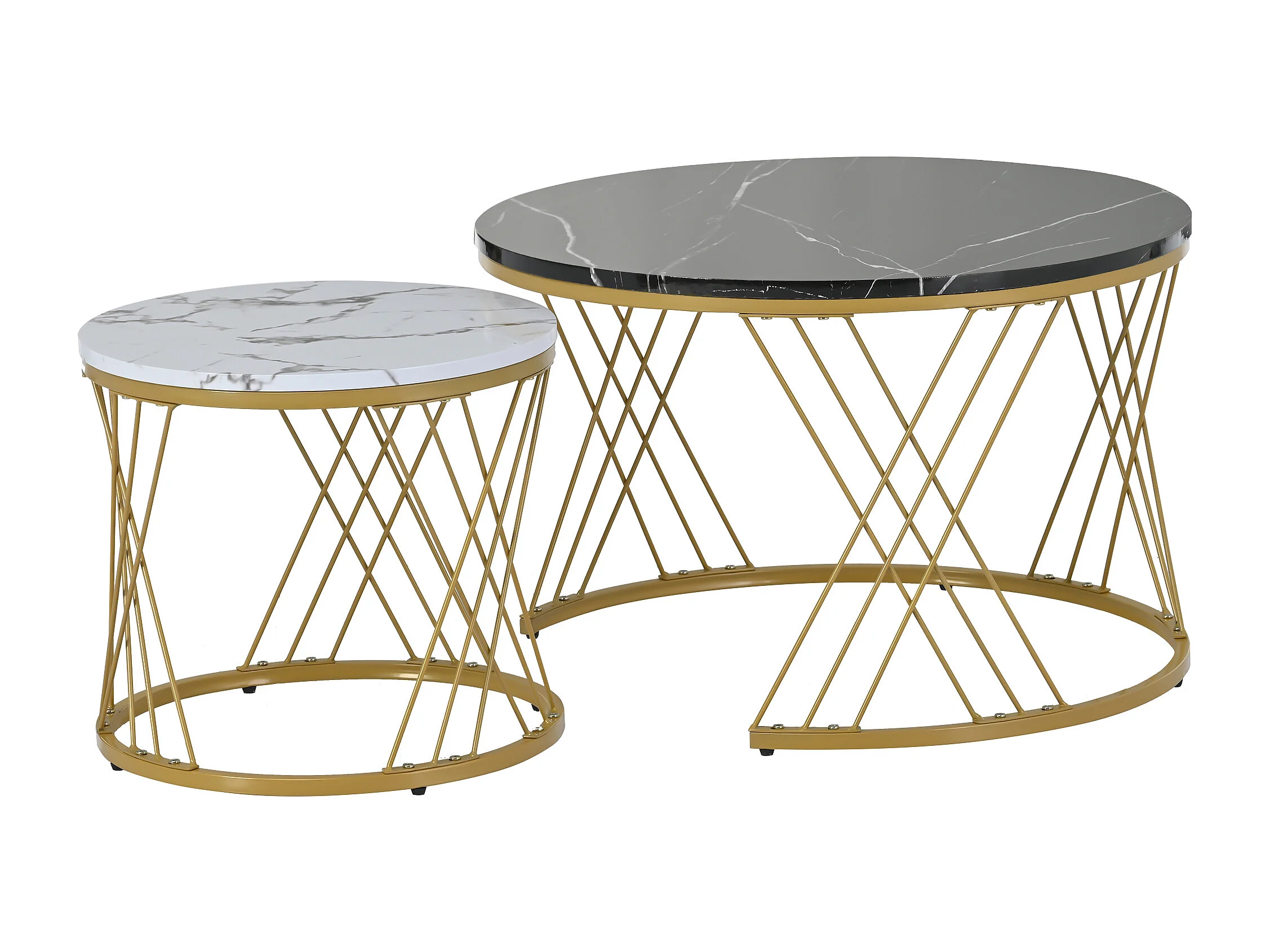 Set van 2 Bijzettafels - fineer met marmerpatroon - metalen structuur - Zwart