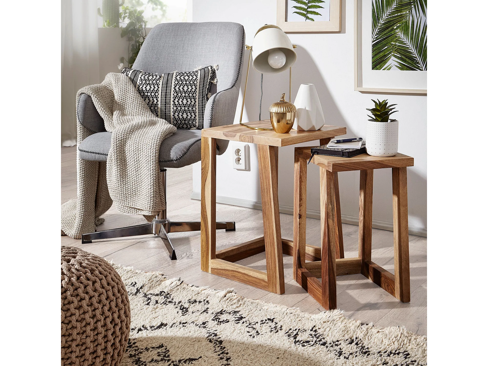 set van 3 bijzettafels massief hout Sheesham woonkamertafel landelijke stijl bijzettafel donkerbruin natuurlijk hout