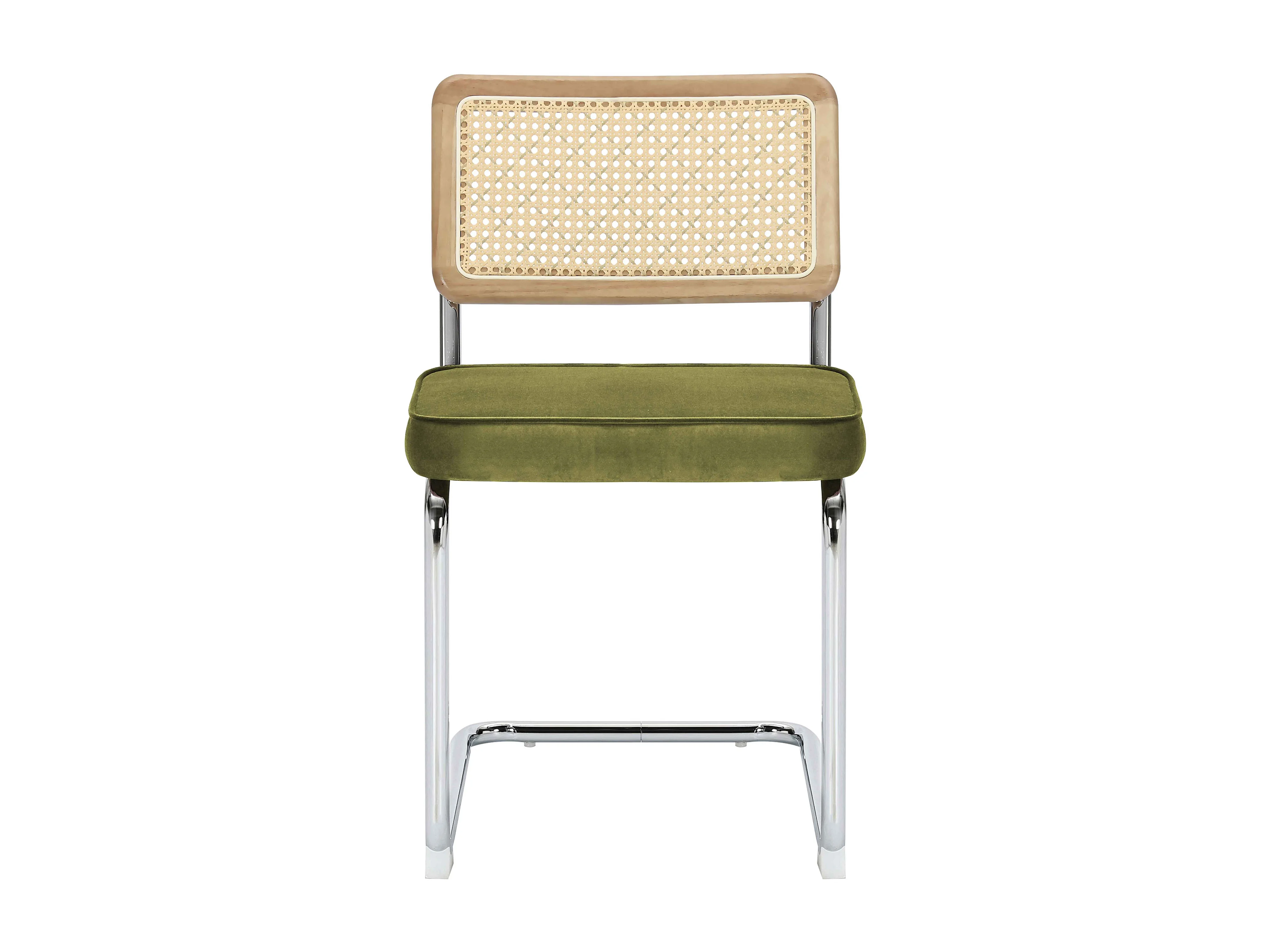 Set van 2 stalen en olijfgroene fluwelen stoelen