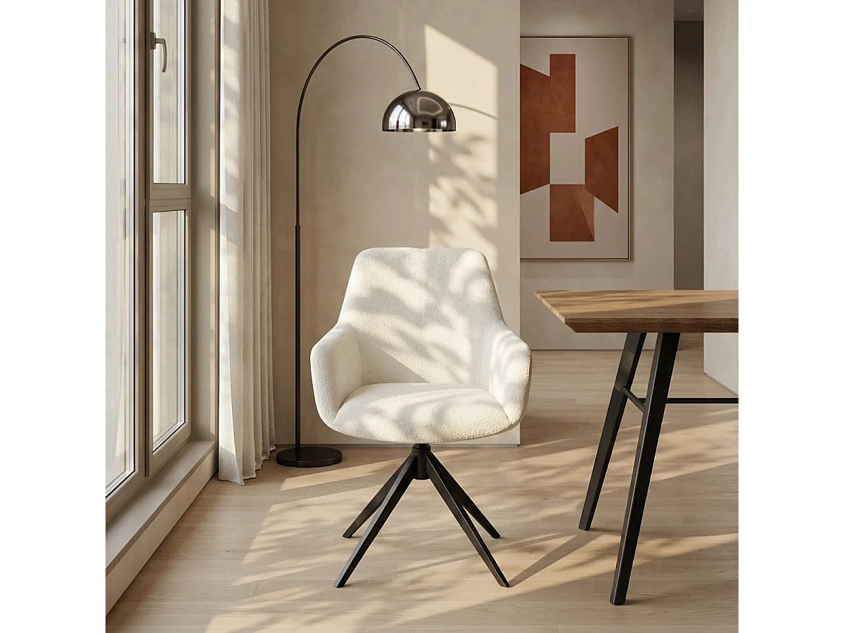 Set van 2 stoelen Helena - Met armleuning - Boucléstof & metaal - Wit