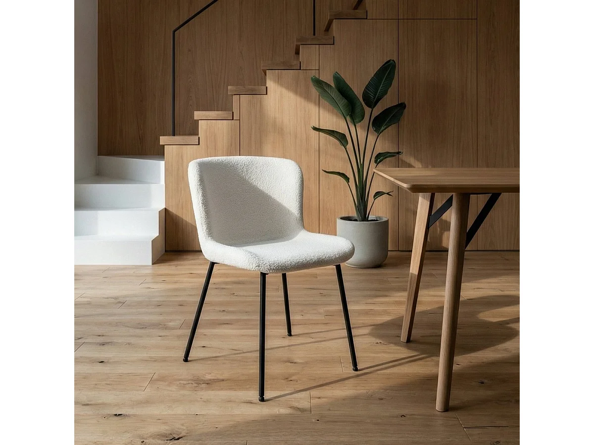 Set van 2 stoelen Teddy - Met rugleuning - Boucléstof & metaal - Wit