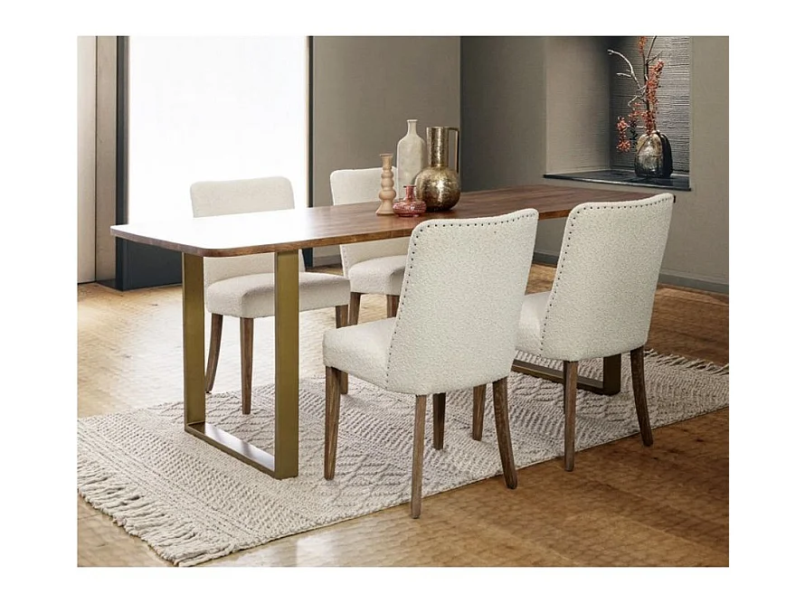 Set van 2 stoelen van eikenhout en boucléstof - Elegant design en comfort-Kleur Licht beige