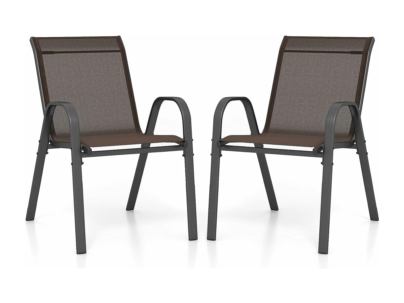 Set van 2 tuinstoelen voor buiten met metalen frame, stapelbare, ademende stoffen eetkamerstoel, tuinfauteuil, draagvermogen 150 kg (bruin, 2 stuks)