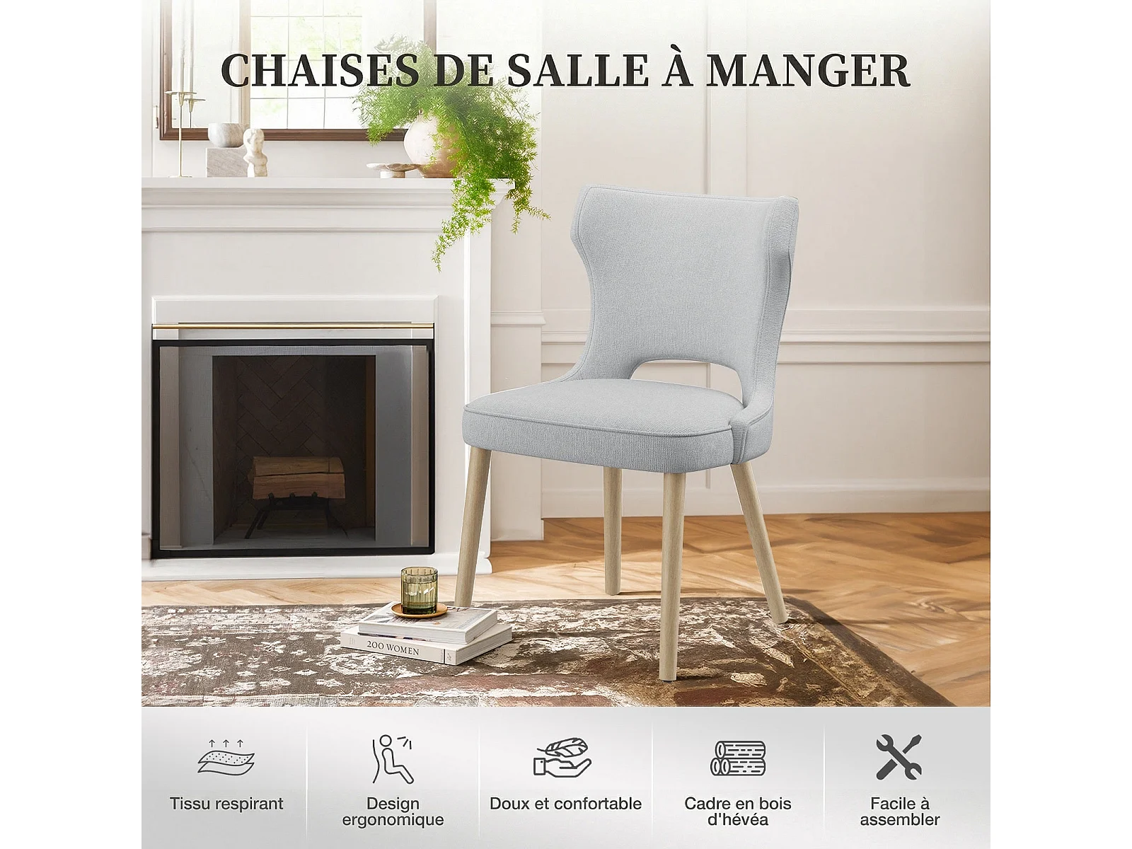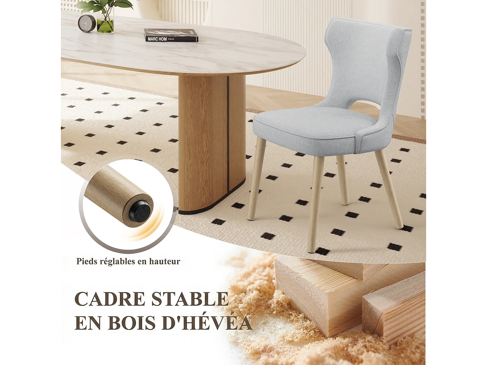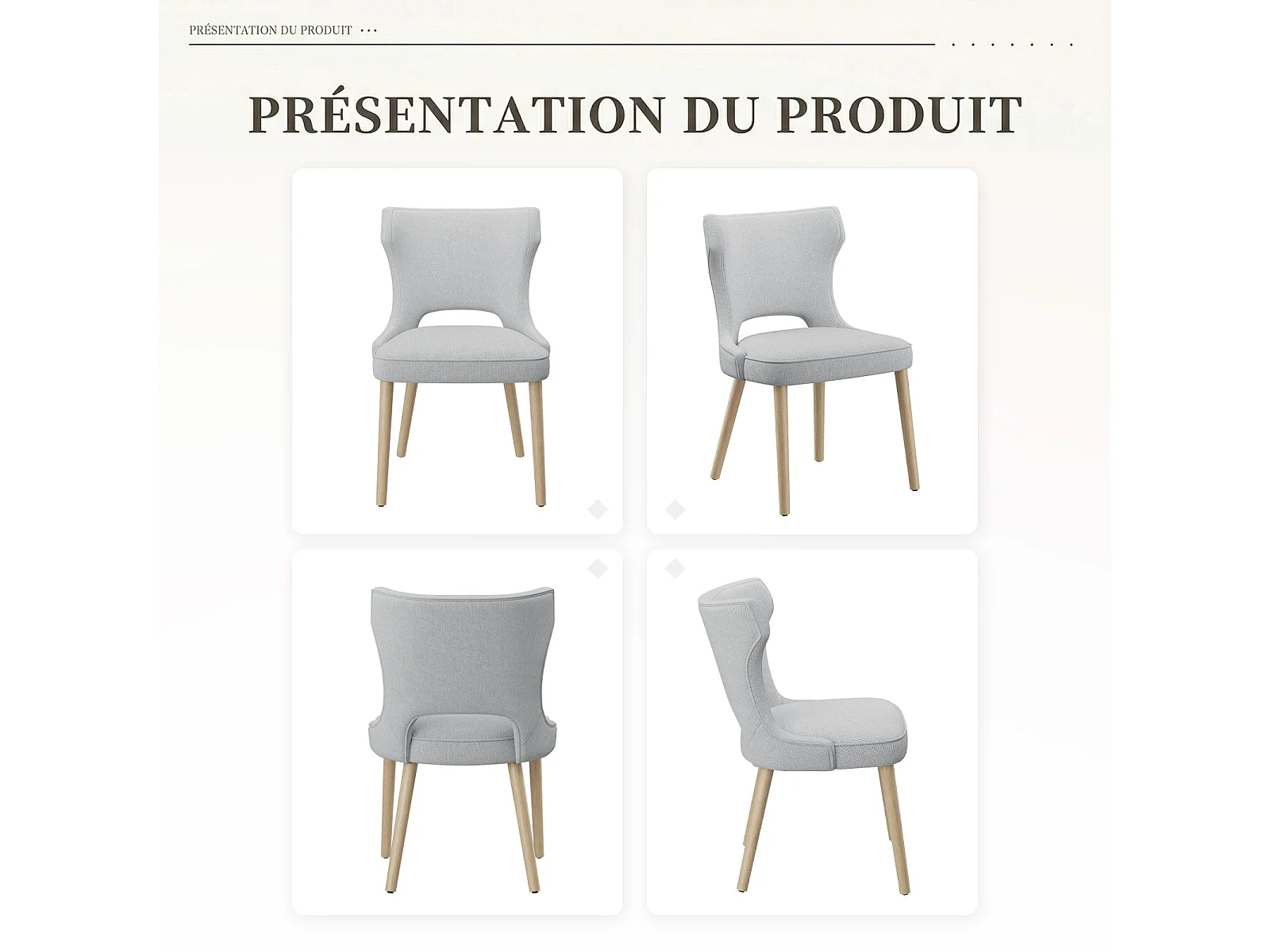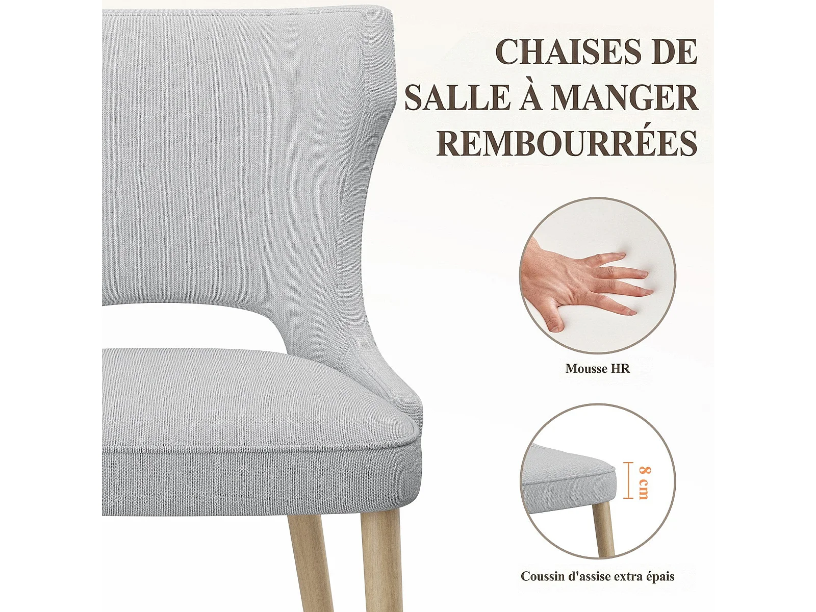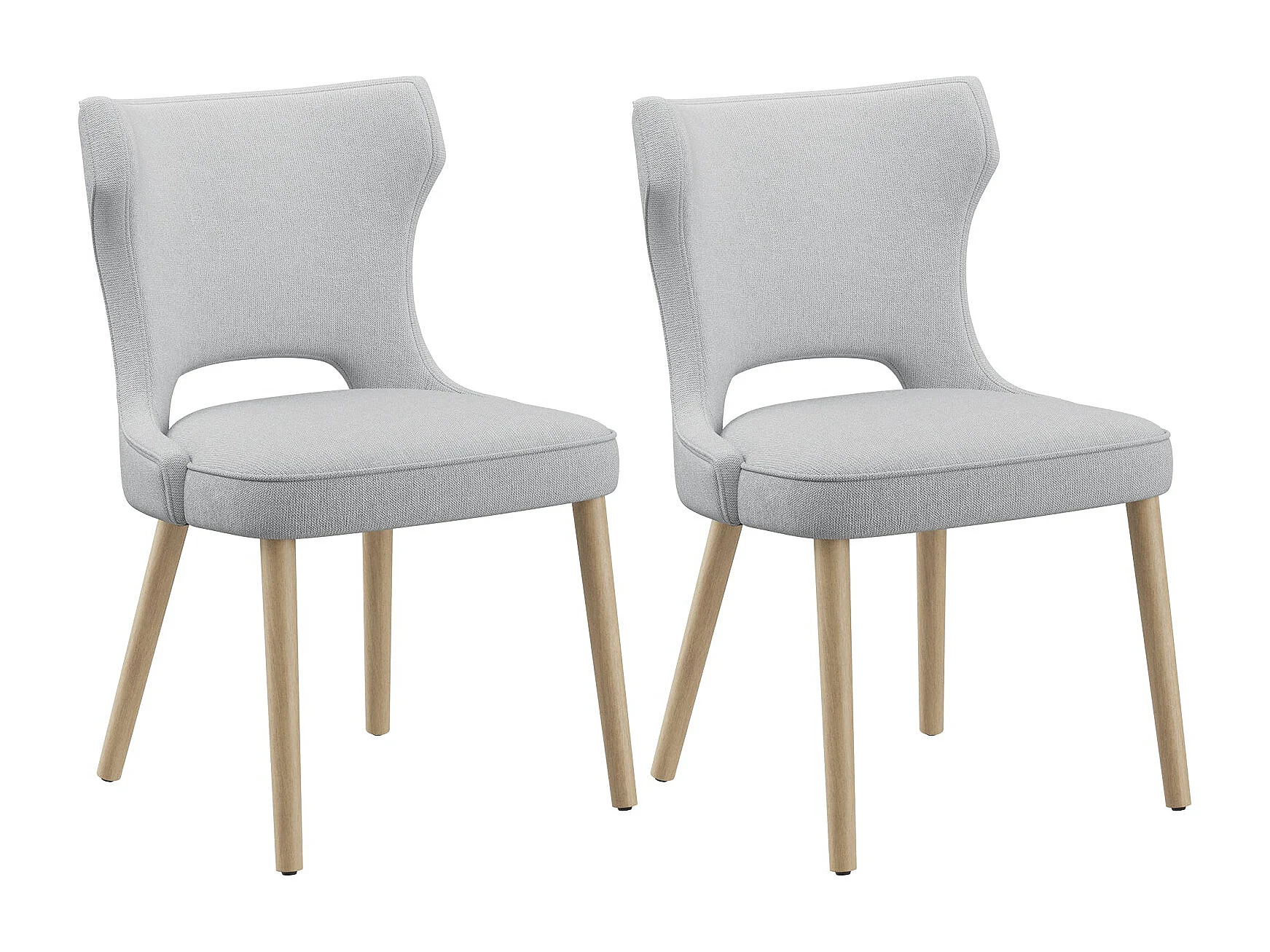 Set van 2 vintage clubstijl eetkamerstoelen met hoge rugleuning, van hout en gestoffeerd - Lichtgrijs