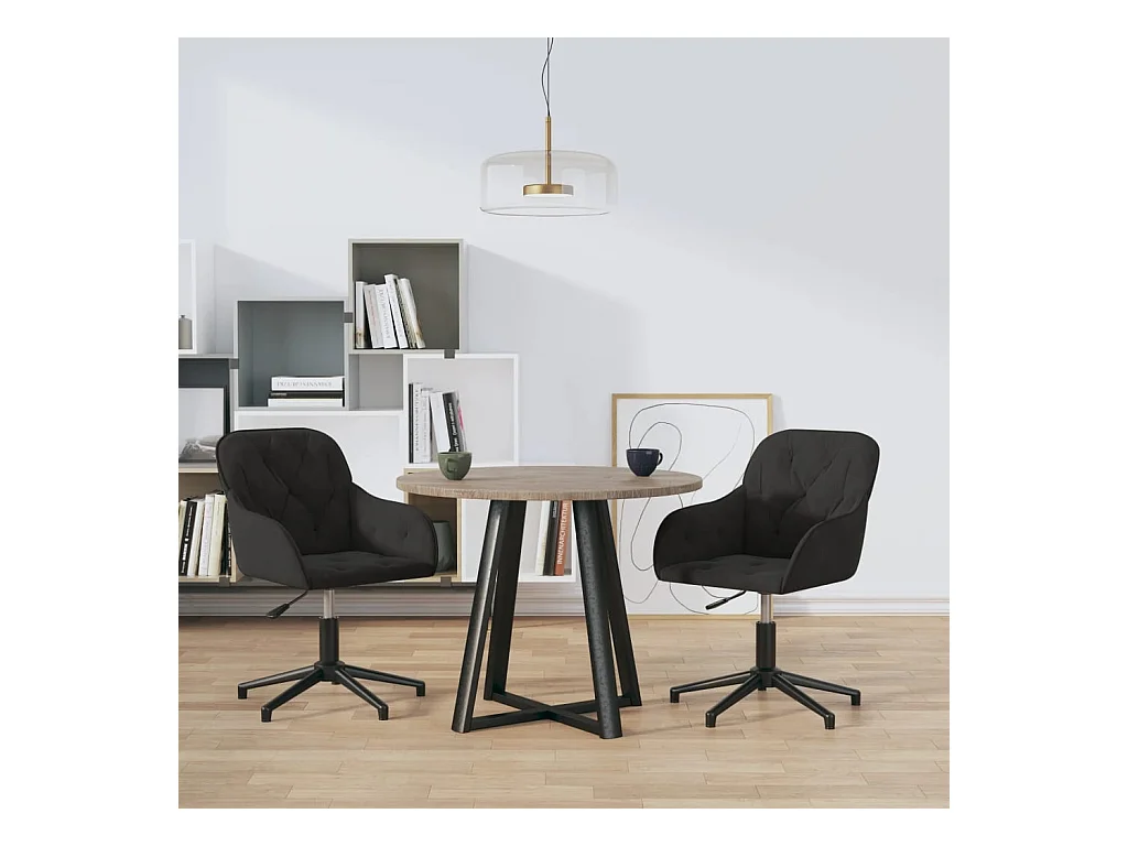 Set van 2 zwarte fluwelen draaibare eetkamerstoelen