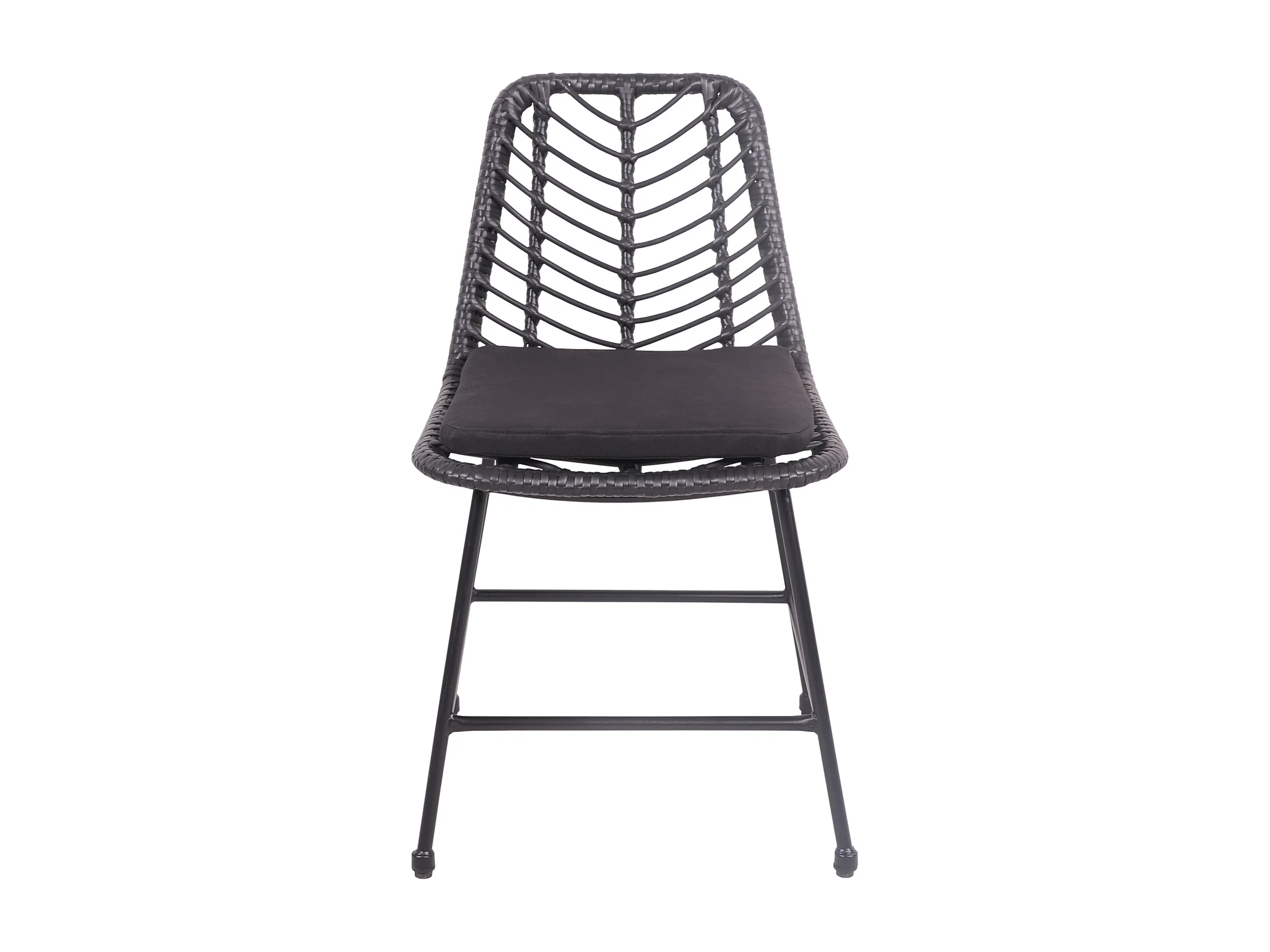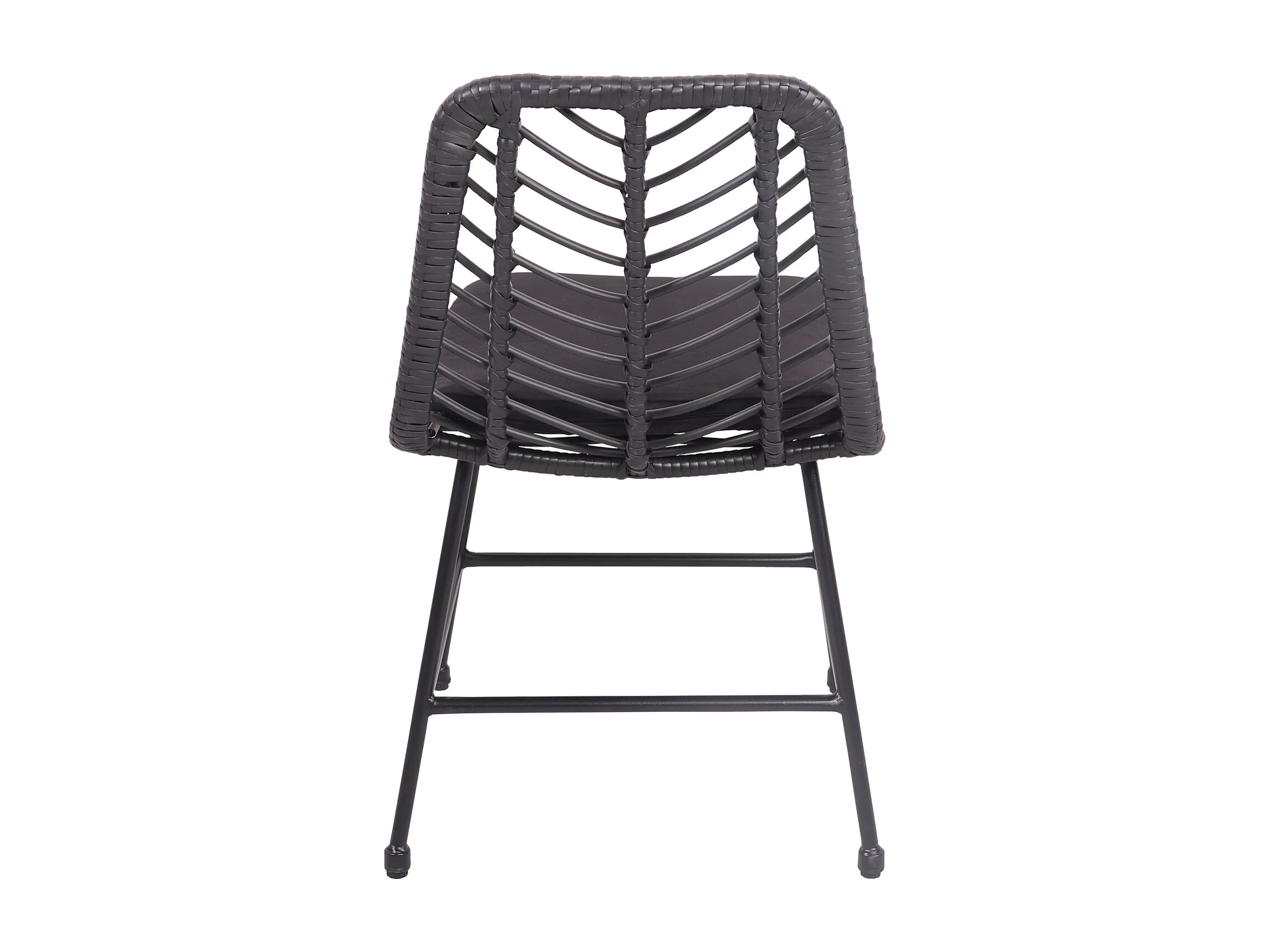 Set van 2 zwarte kunststof rotan stoelen met kussens OKA