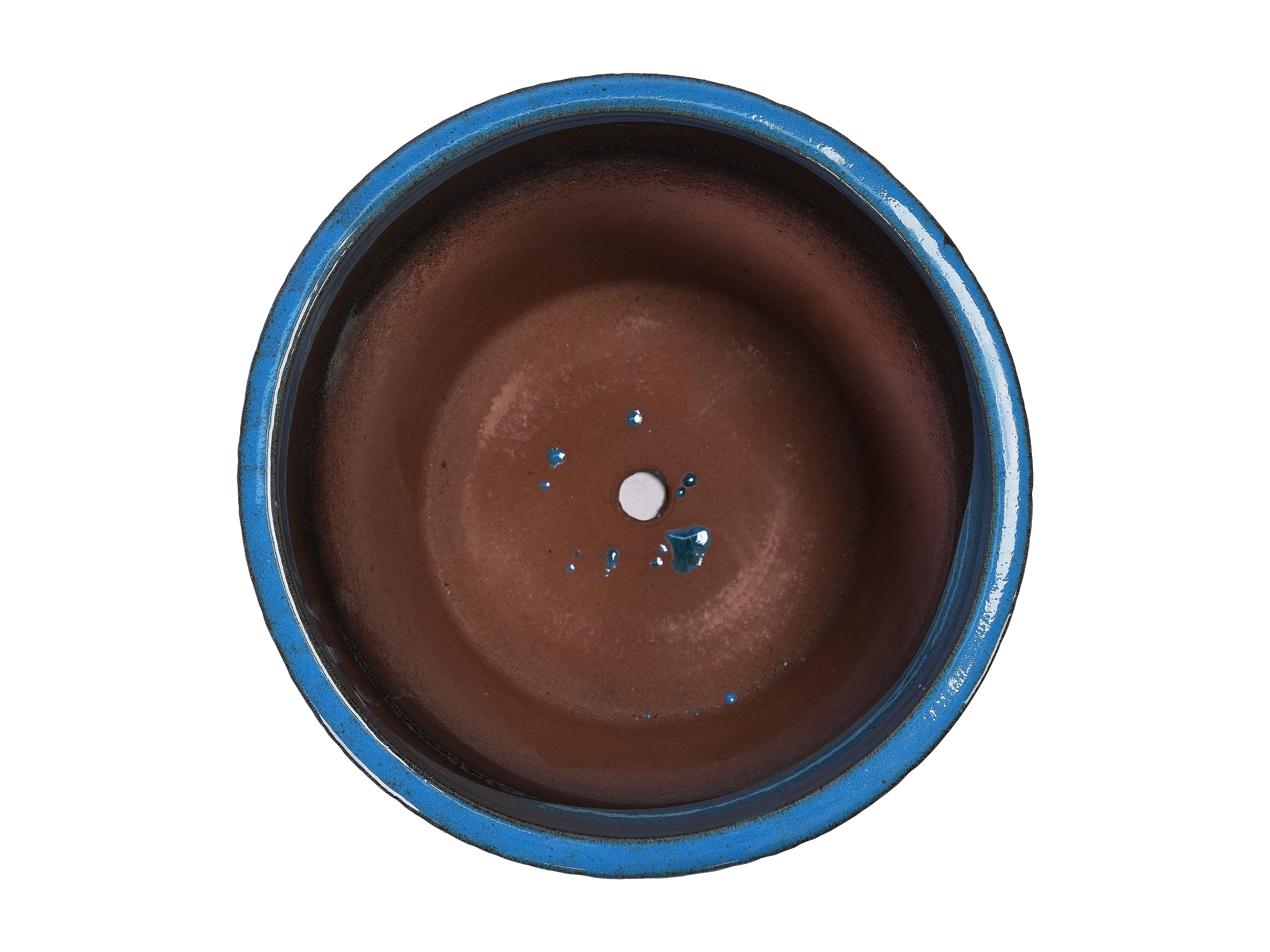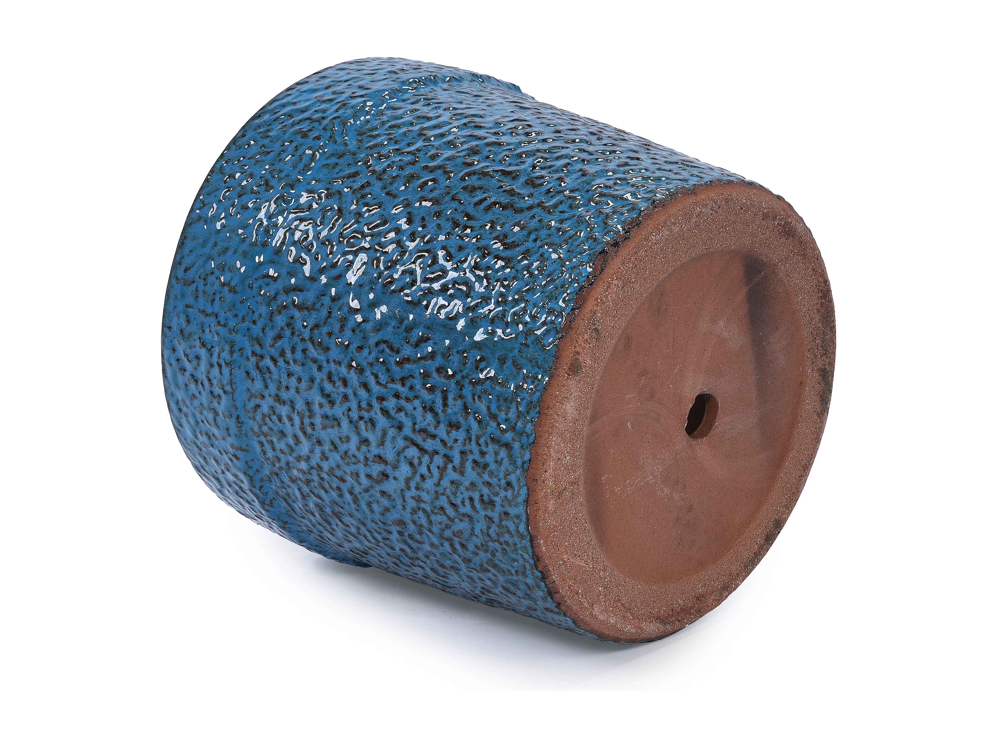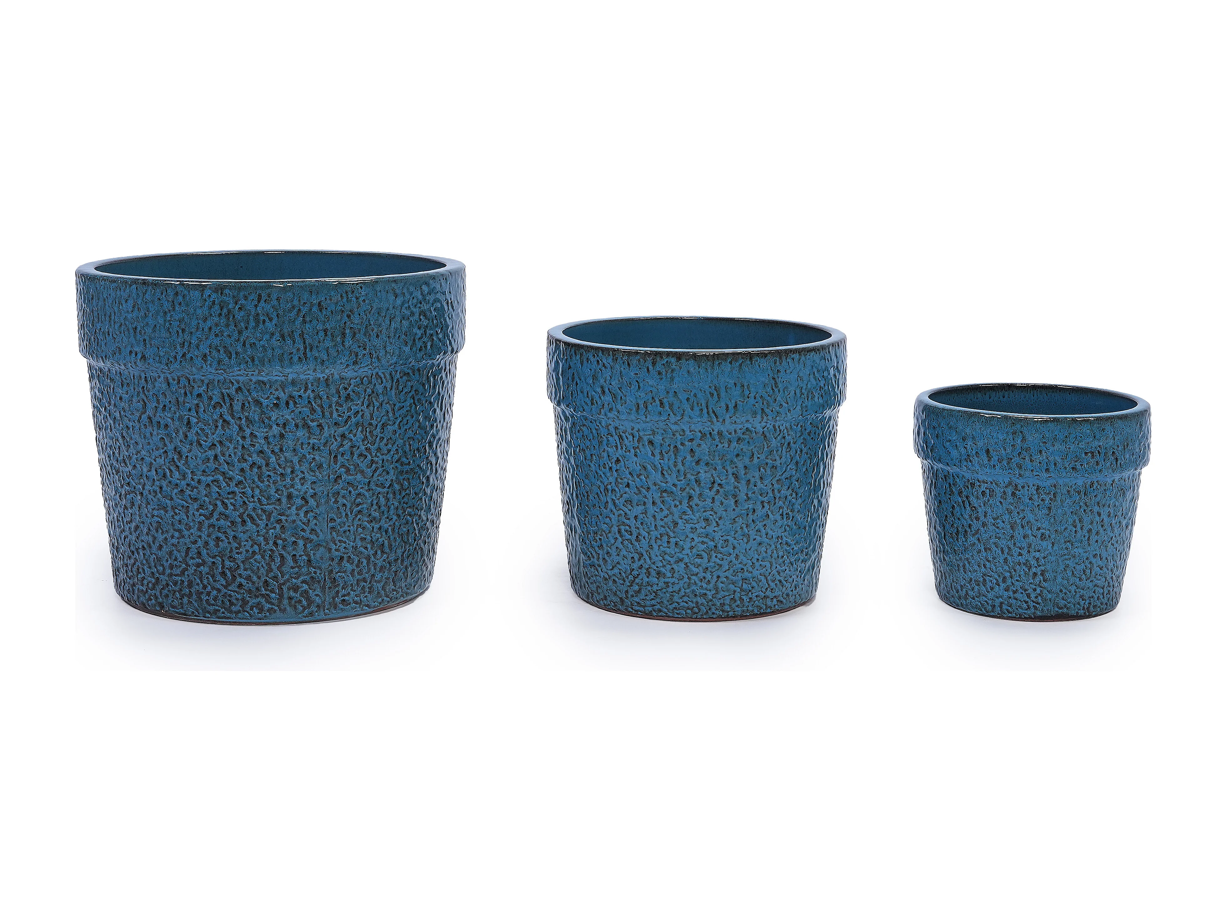 Set van 3 antieke blauwe keramische bloempotten Ø 38,1/30,5/22,7 cm