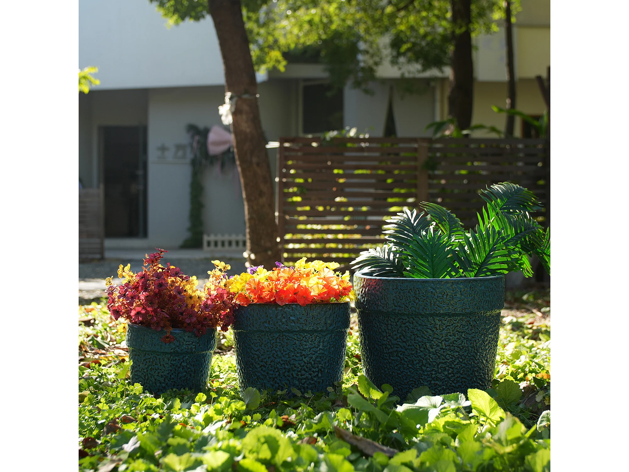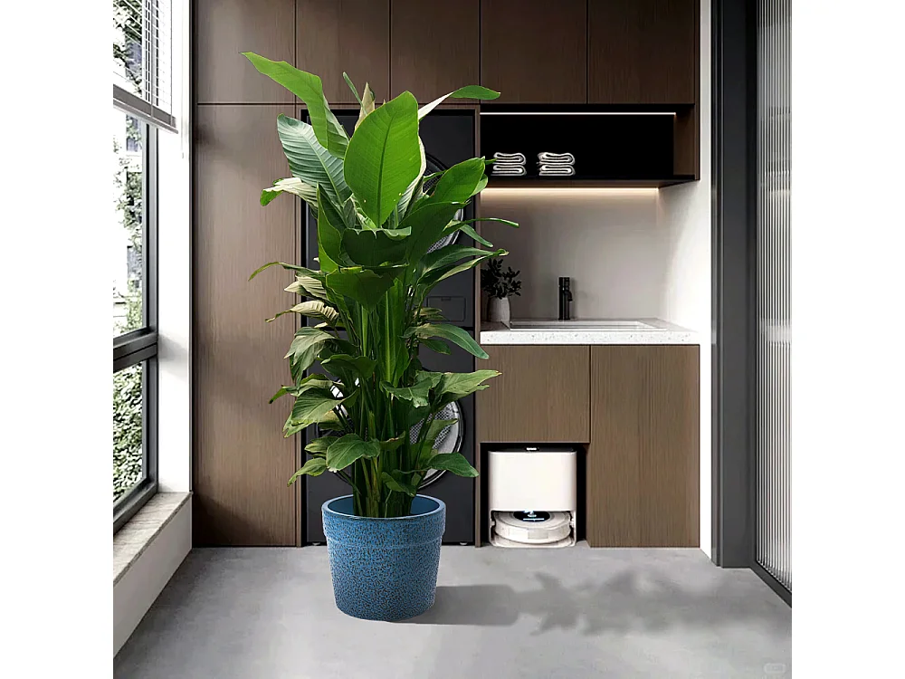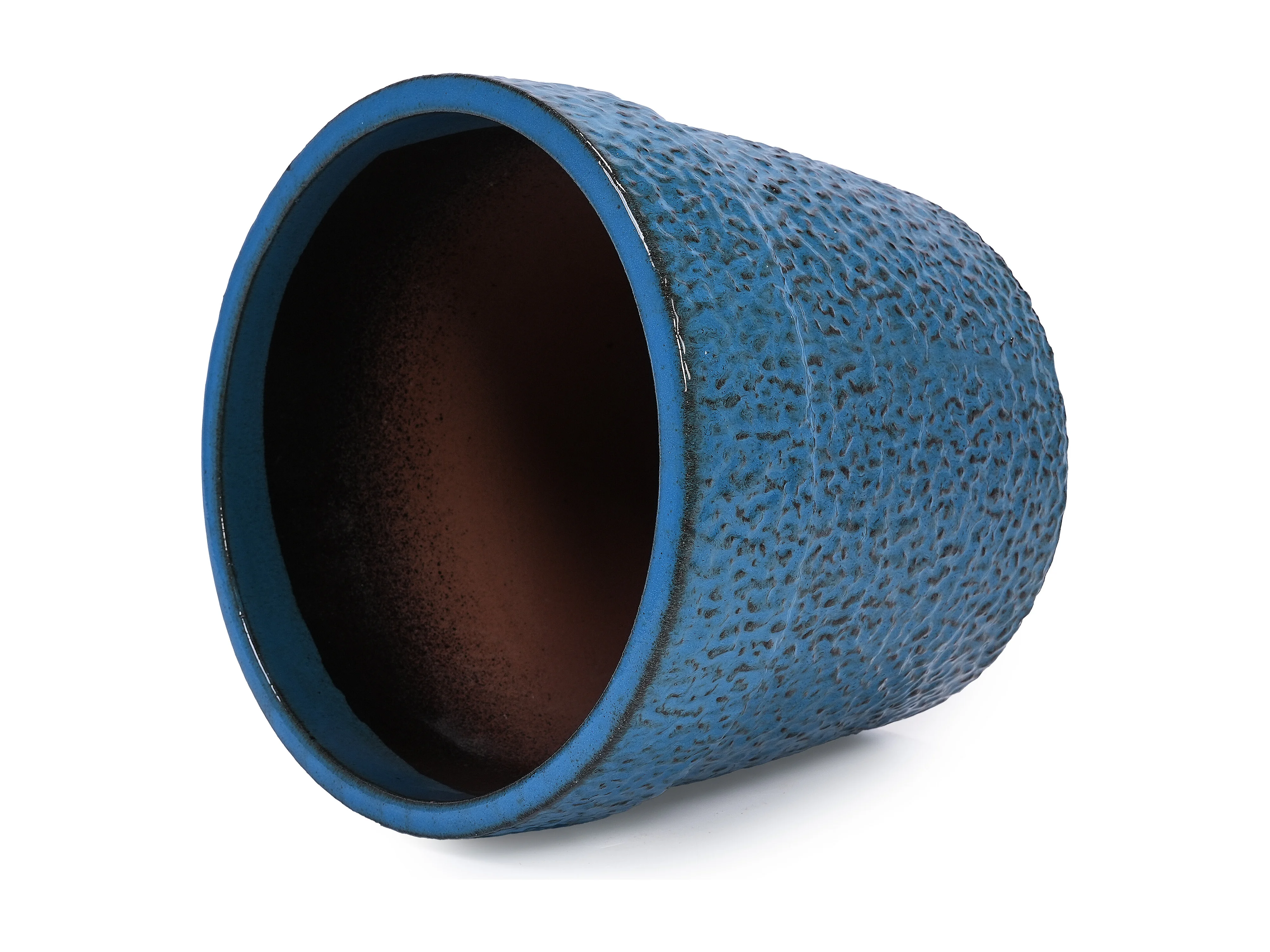 Set van 3 antieke blauwe keramische bloempotten Ø 38,1/30,5/22,7 cm