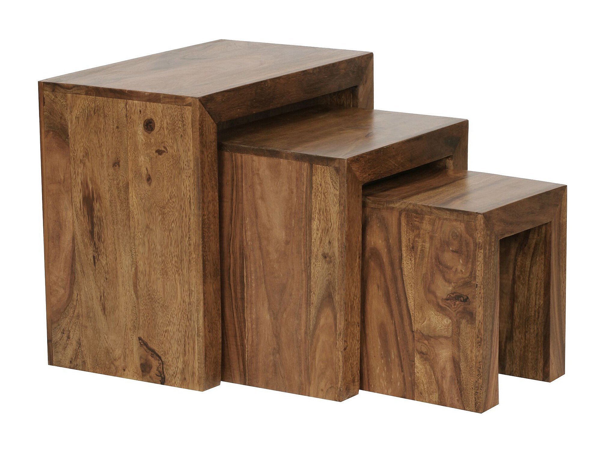 bijzettafel set van 3 massief houten sheesham salontafel design kolommen landelijke stijl salontafel vierkant