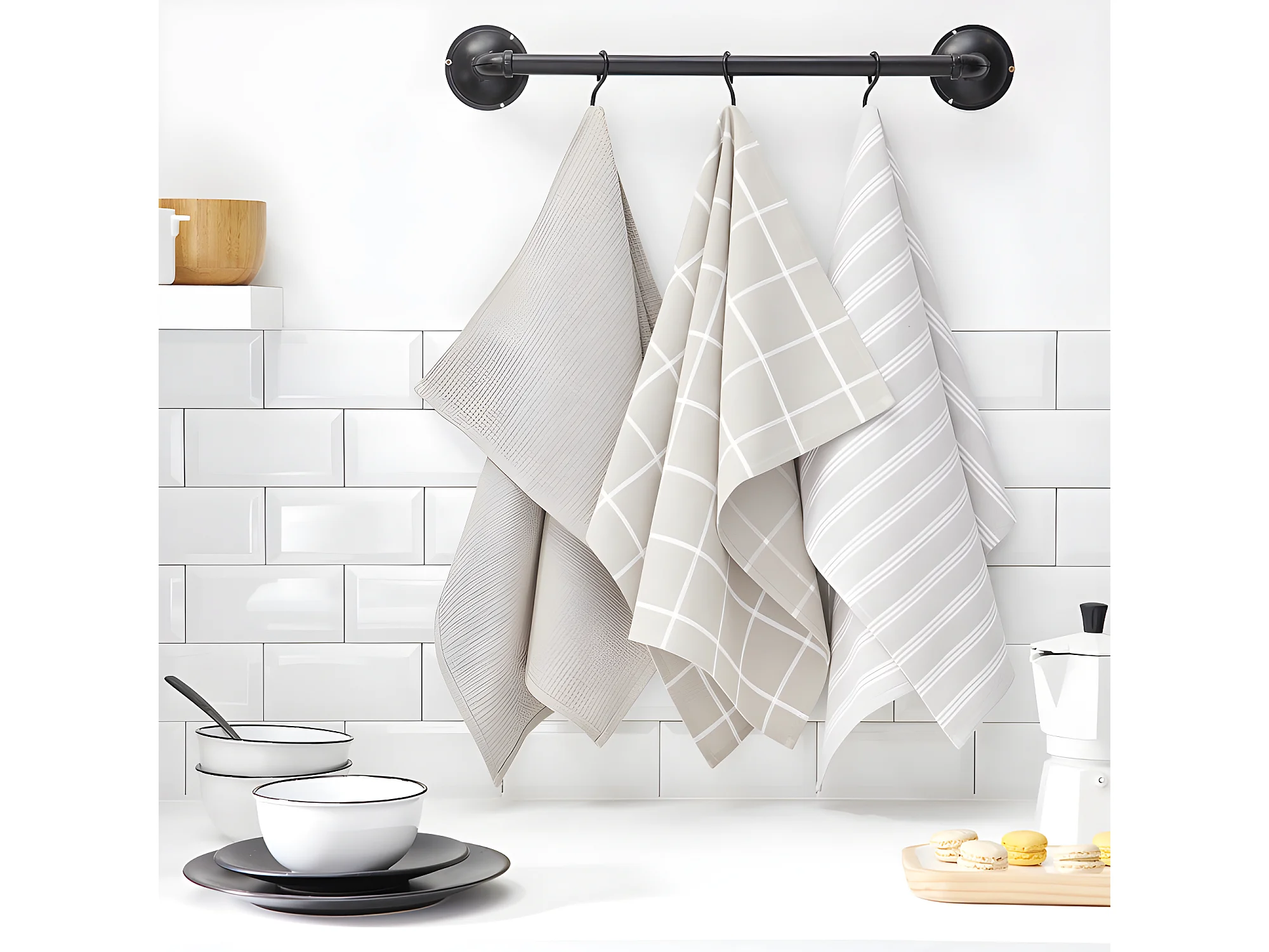 Set van 3 geassorteerde katoenen doeken. Linnen enkele streep