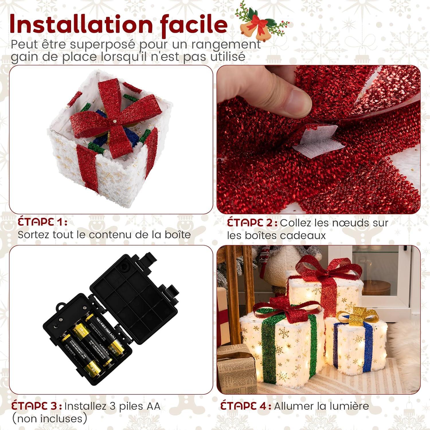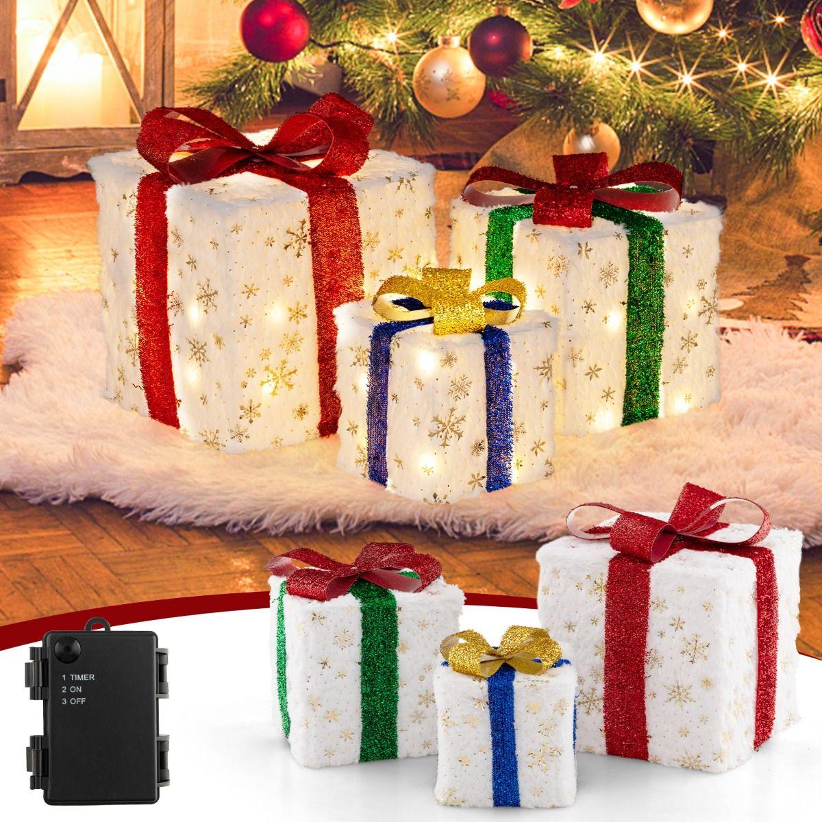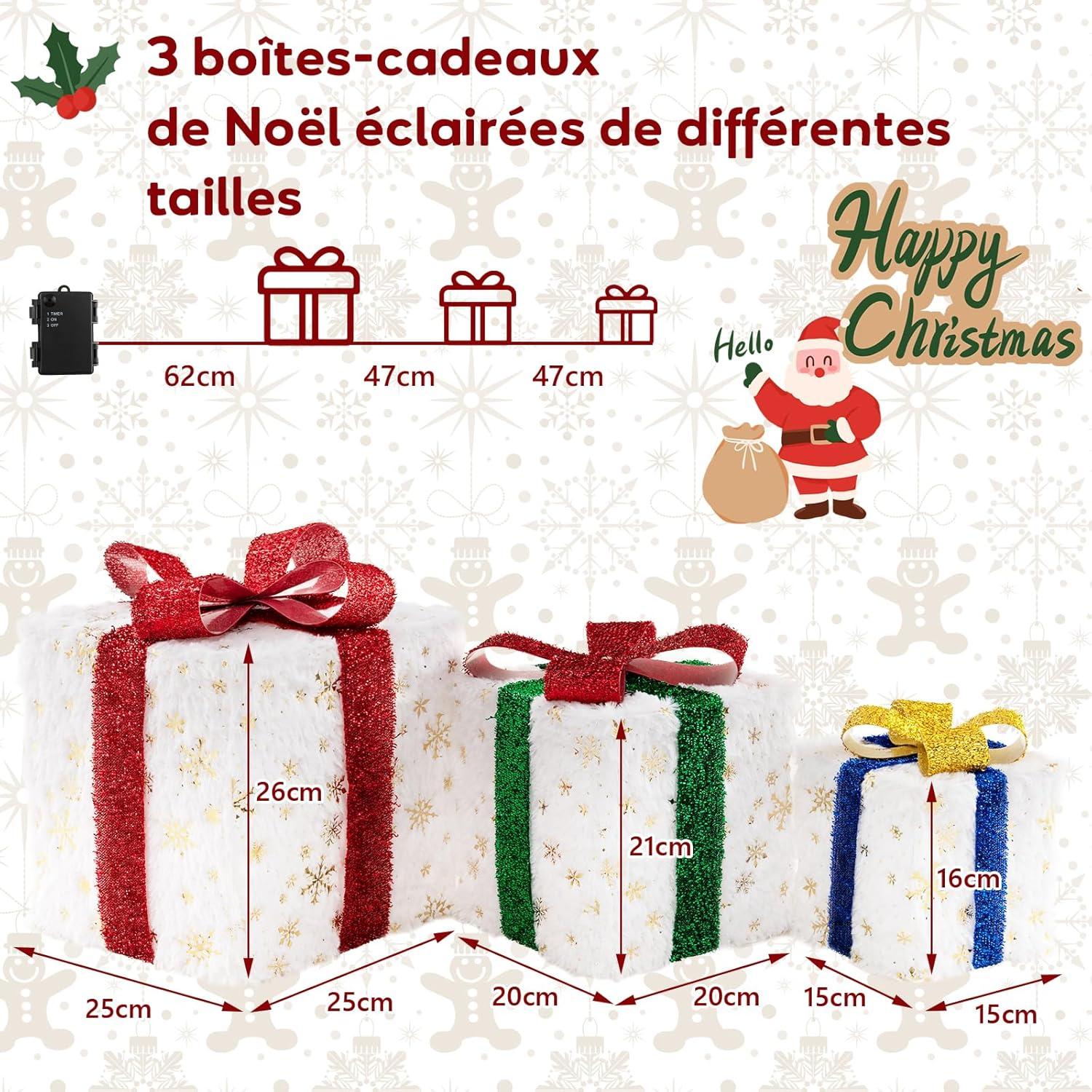 Set van 3 kerstlichtgevende geschenkdozen met 48 LED's, met 6 haringen en 10 kabelbinders
