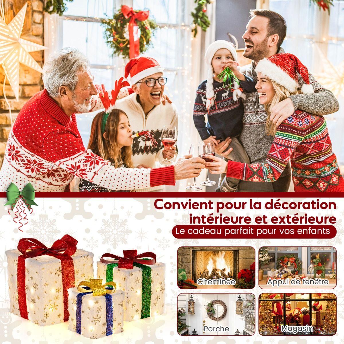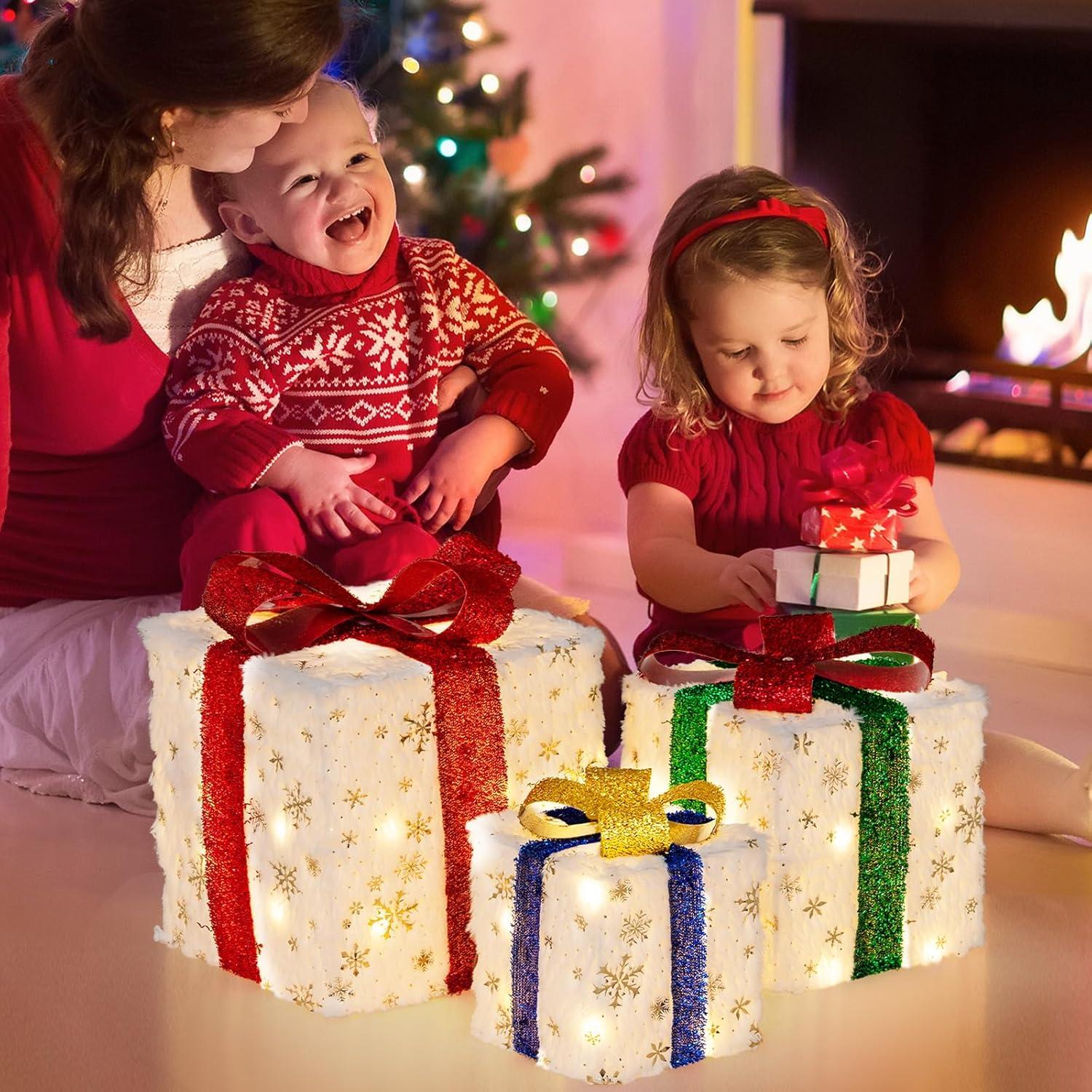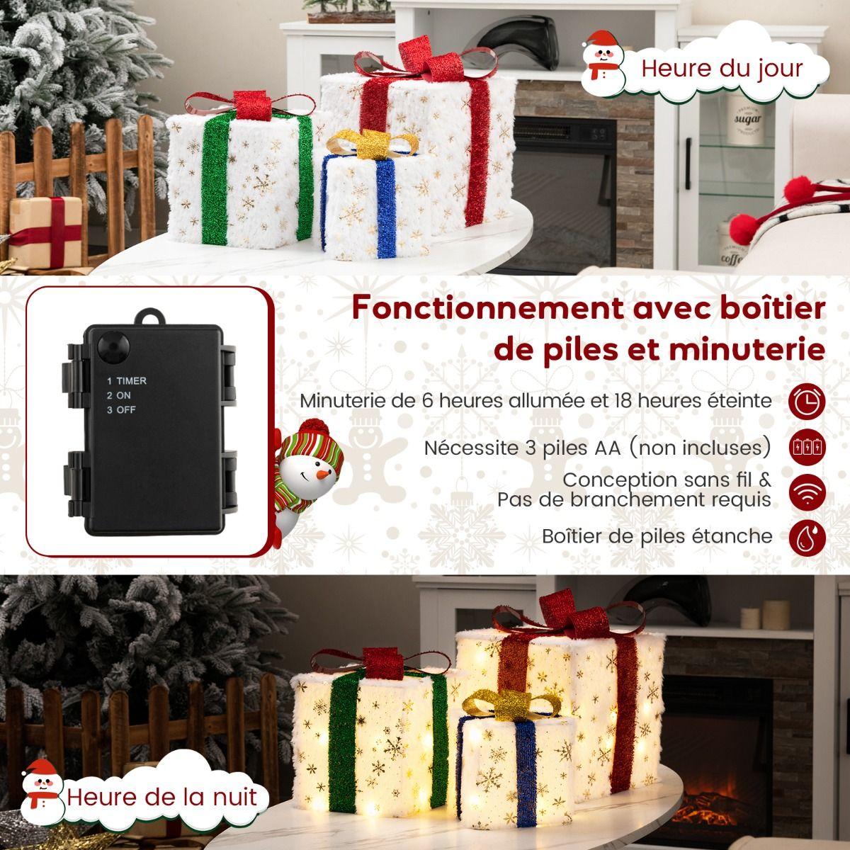 Set van 3 kerstlichtgevende geschenkdozen met 48 LED's, met 6 haringen en 10 kabelbinders