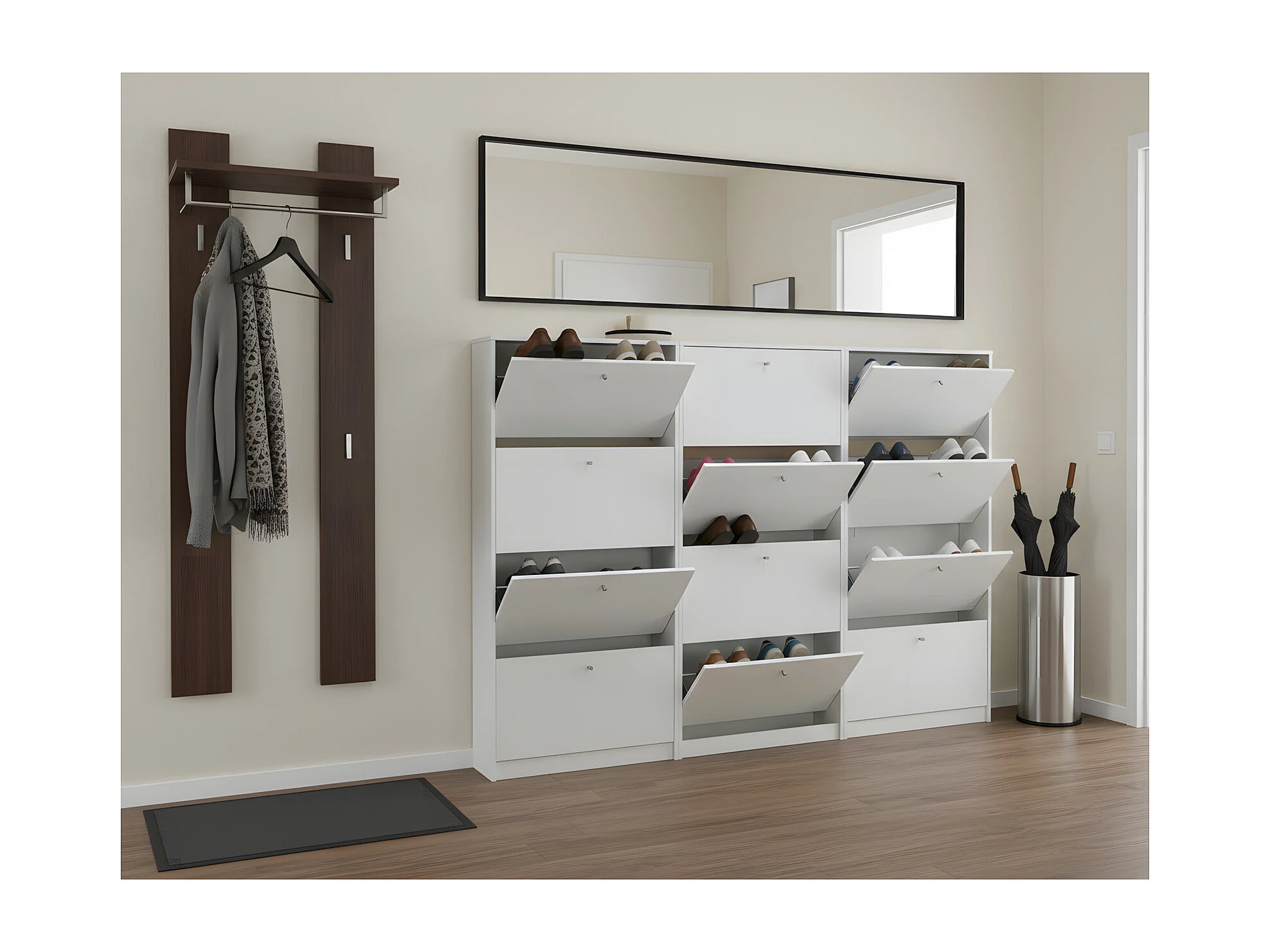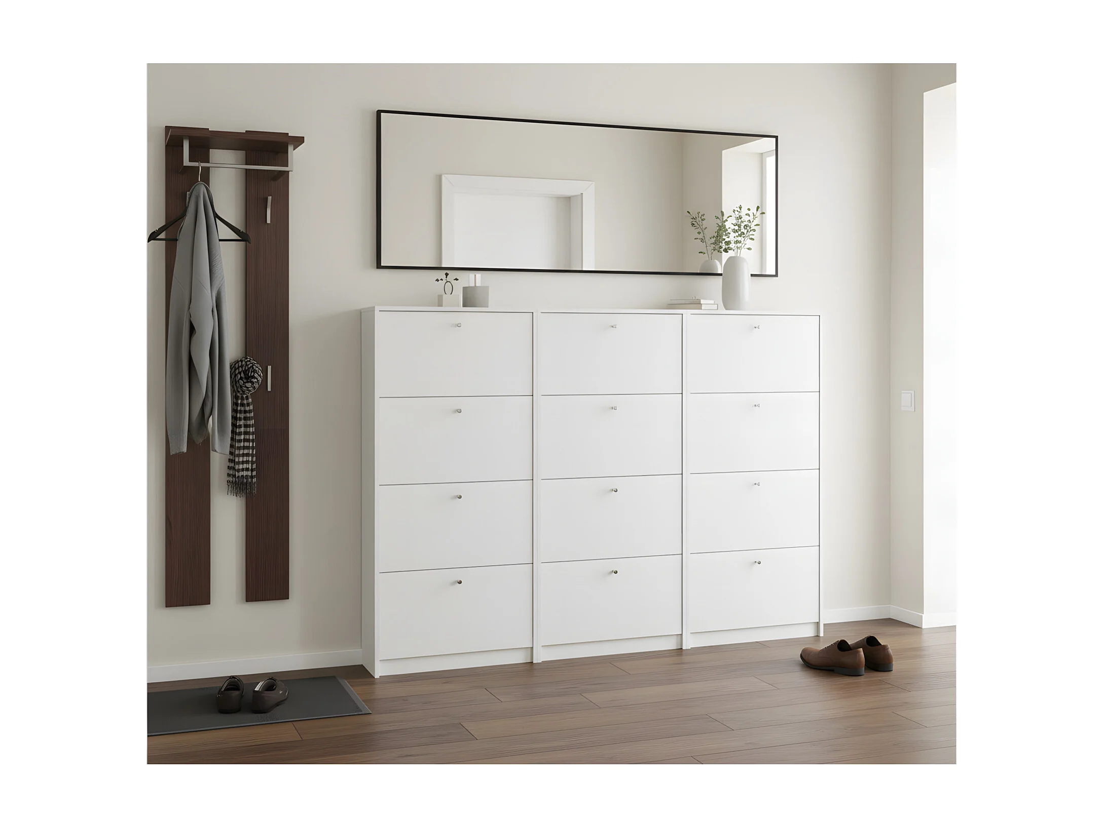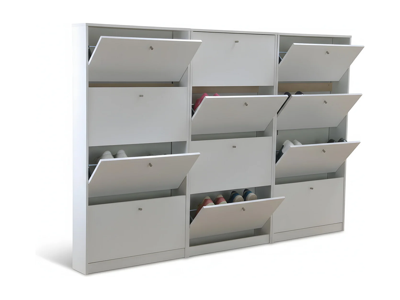 Set van 3 schoenenkasten wit mat Escape 225x148x17 cm.