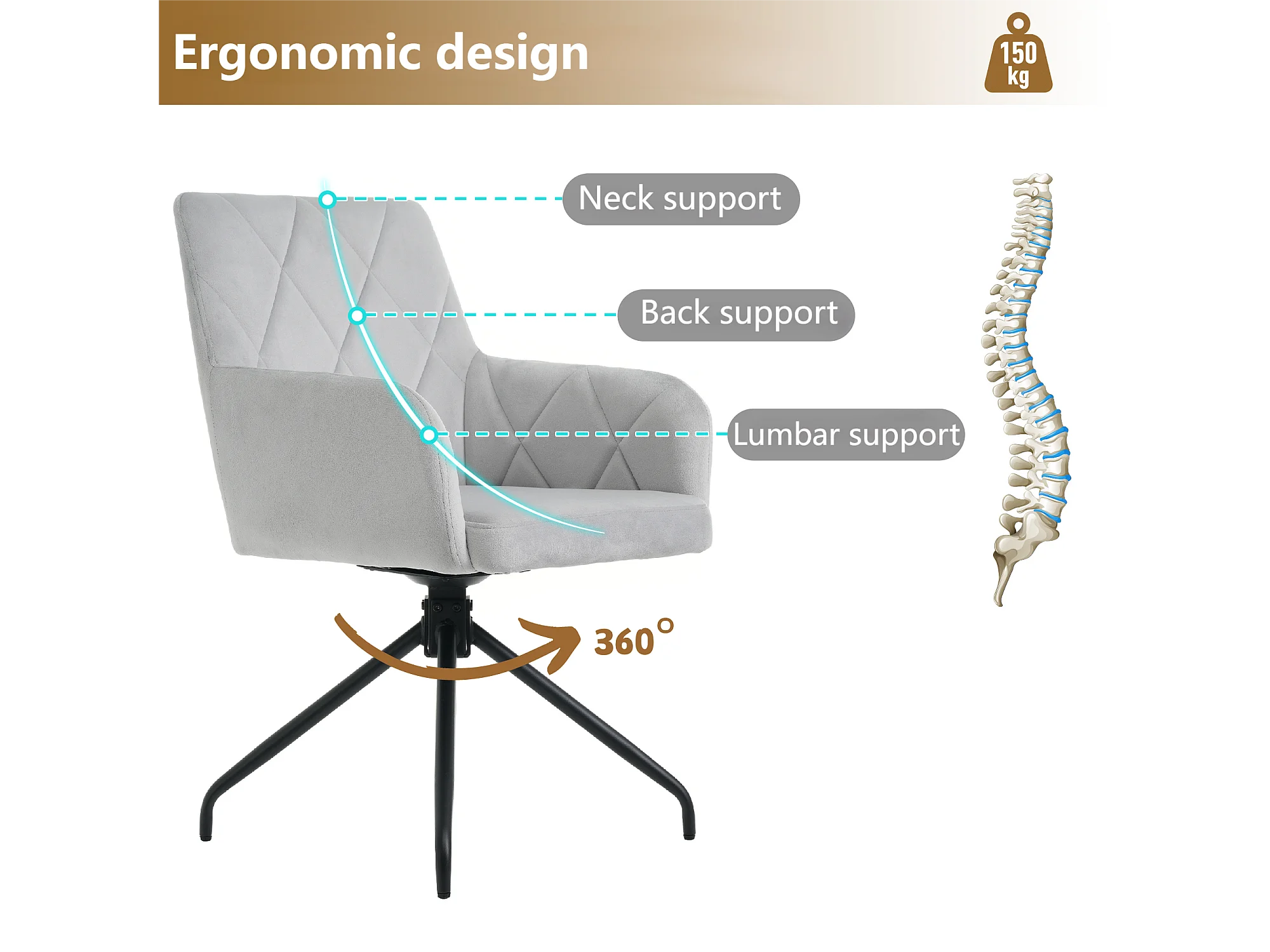 Set van 4 360° draaistoelen - fluwelen stof - rugleuning ruitpatroon - Grijs