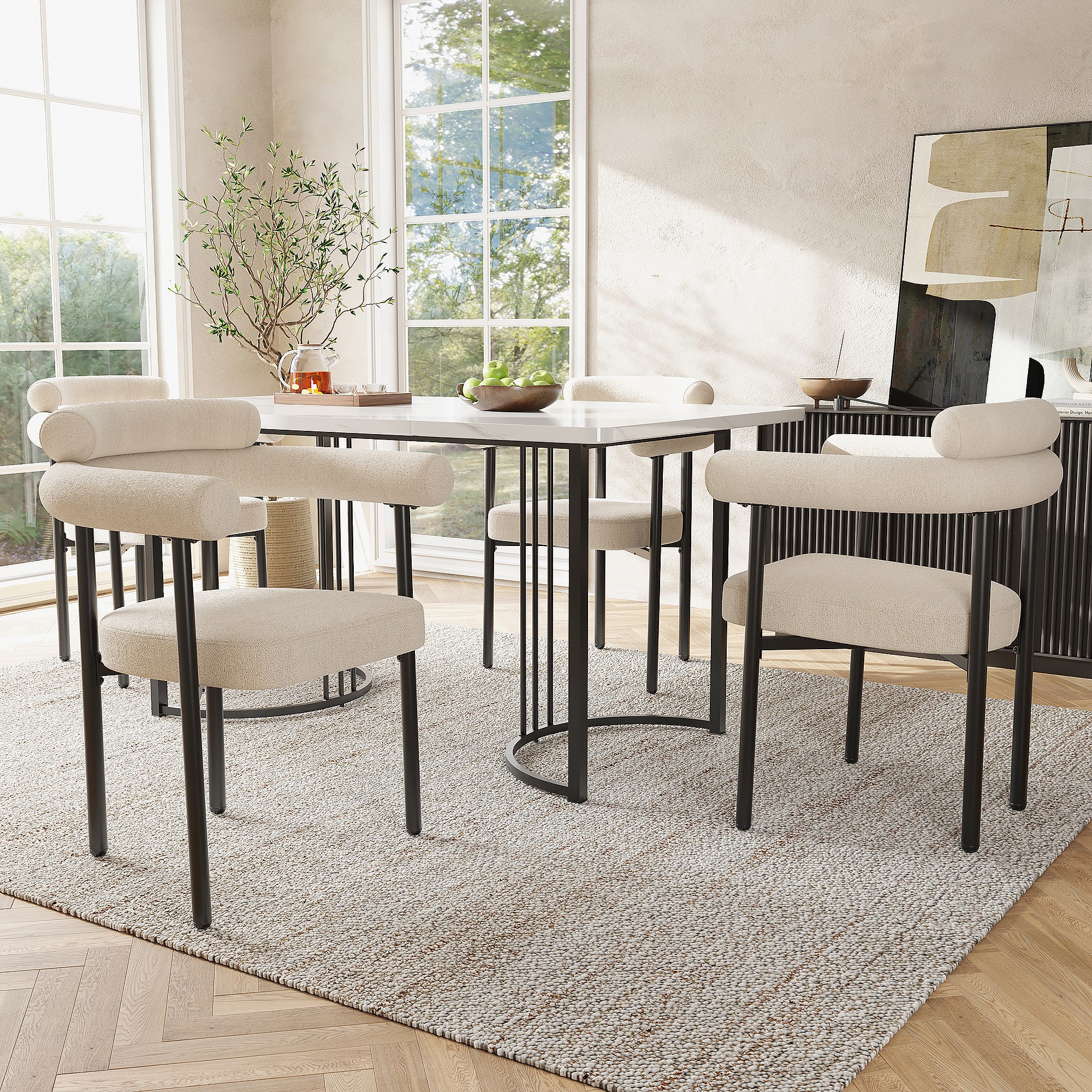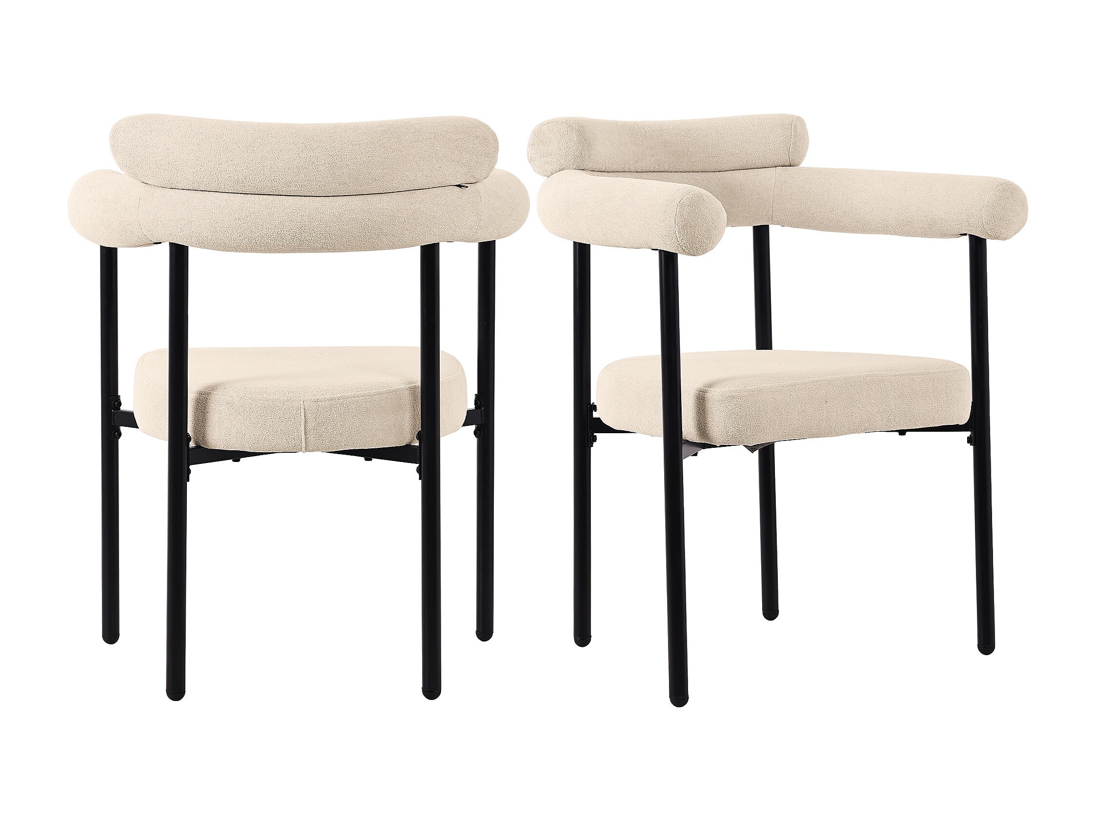 Set van 4 beige eetkamerstoelen - Eetkamerstoel met rugleuning en armleuningen - suède - zwarte metalen poten