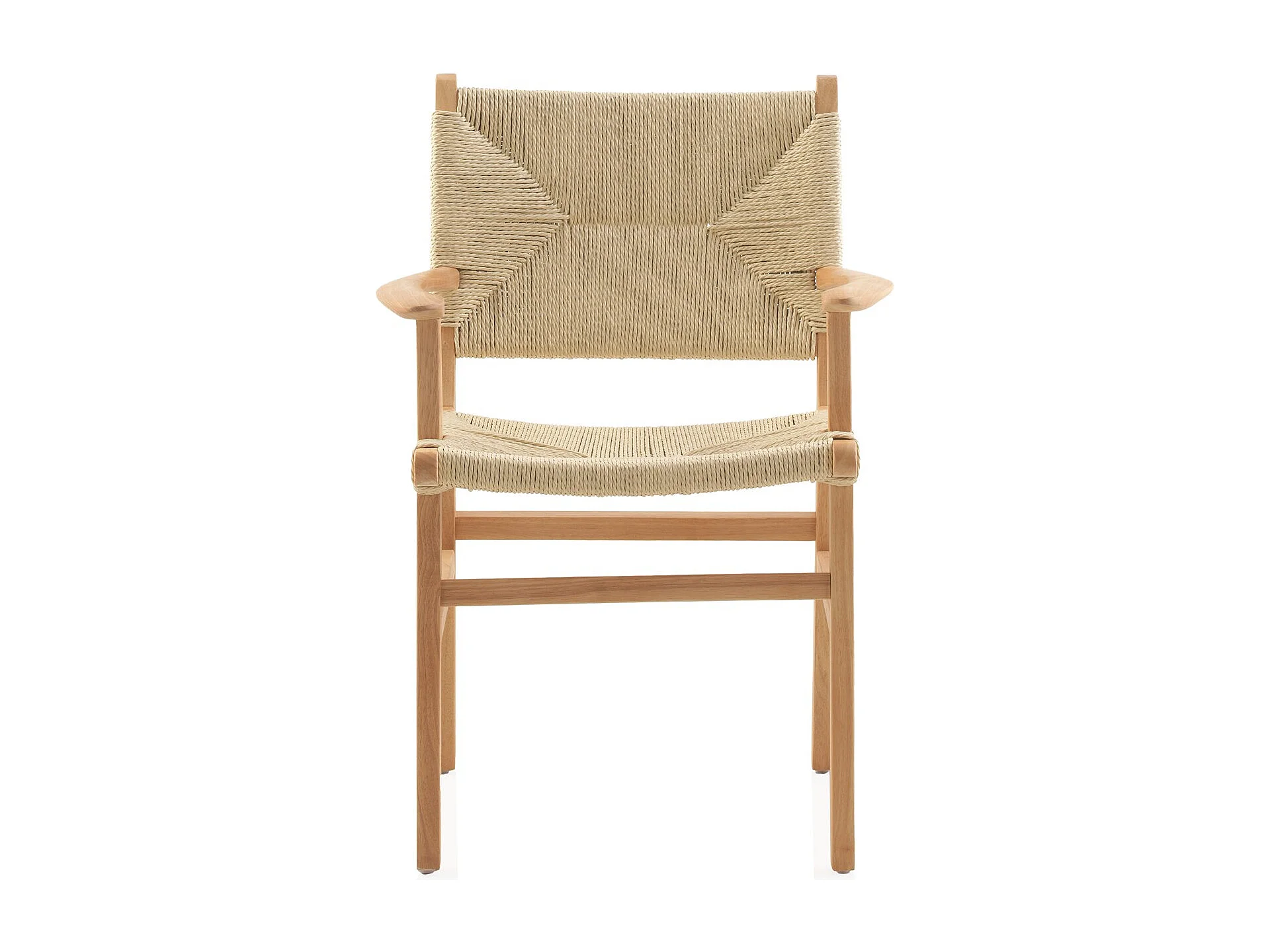 Set van 4 fauteuils van rubberhout met gevlochten zitting en rugleuning