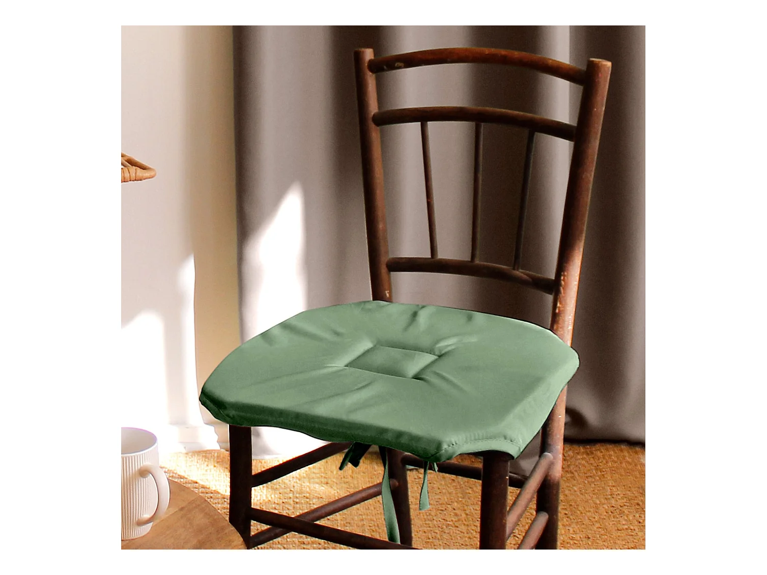 Set van 4 flapstoelkussens, 40x40 cm, kleigroen, knopen, 100% oeko-tex gecertificeerd polyester, Basic collectie