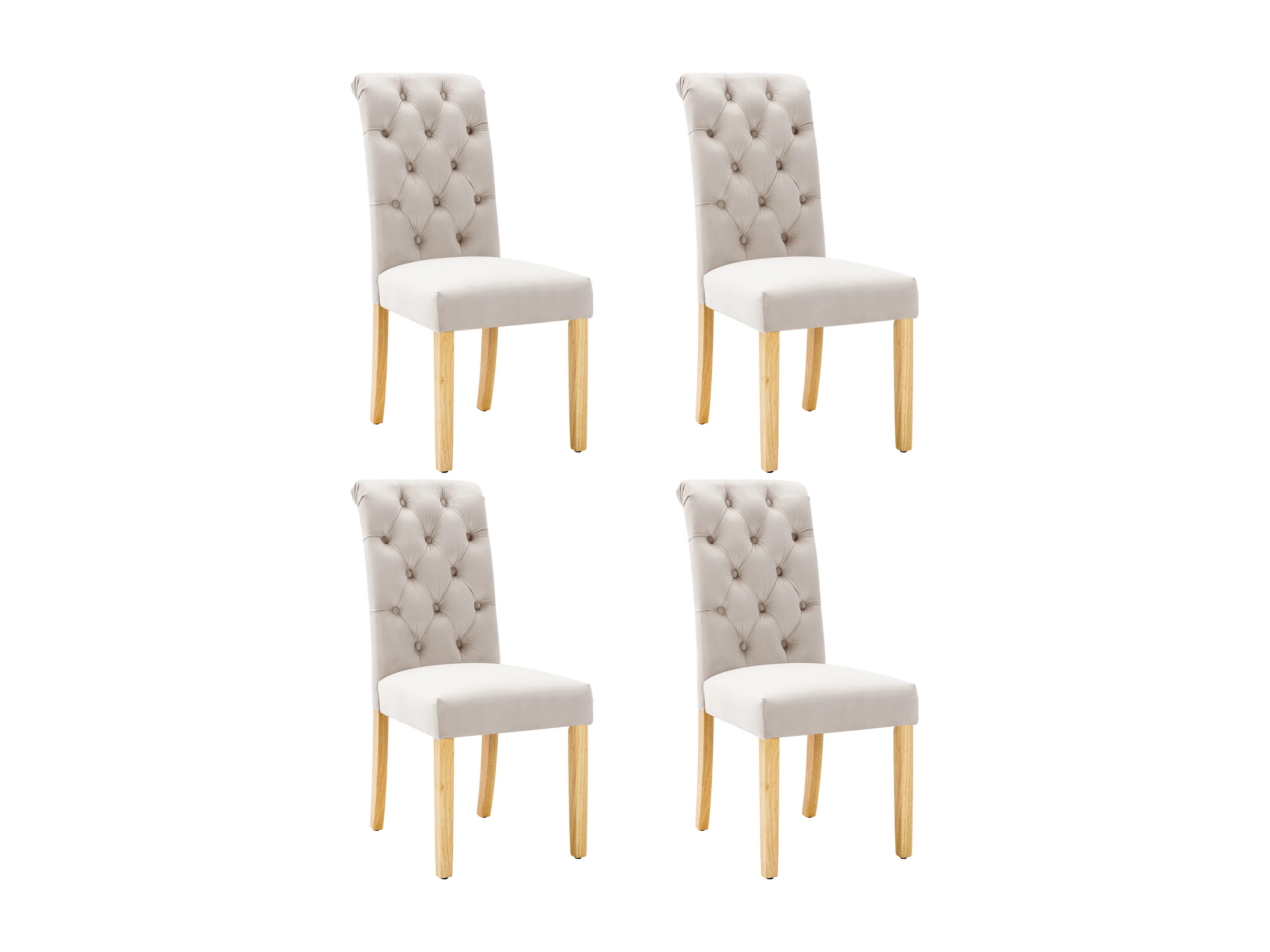 Set van 4 fluwelen eetkamerstoelen - 100 x 63 x 45 cm - met eikenhouten poten - voor slaapkamer en woonkamer - beige