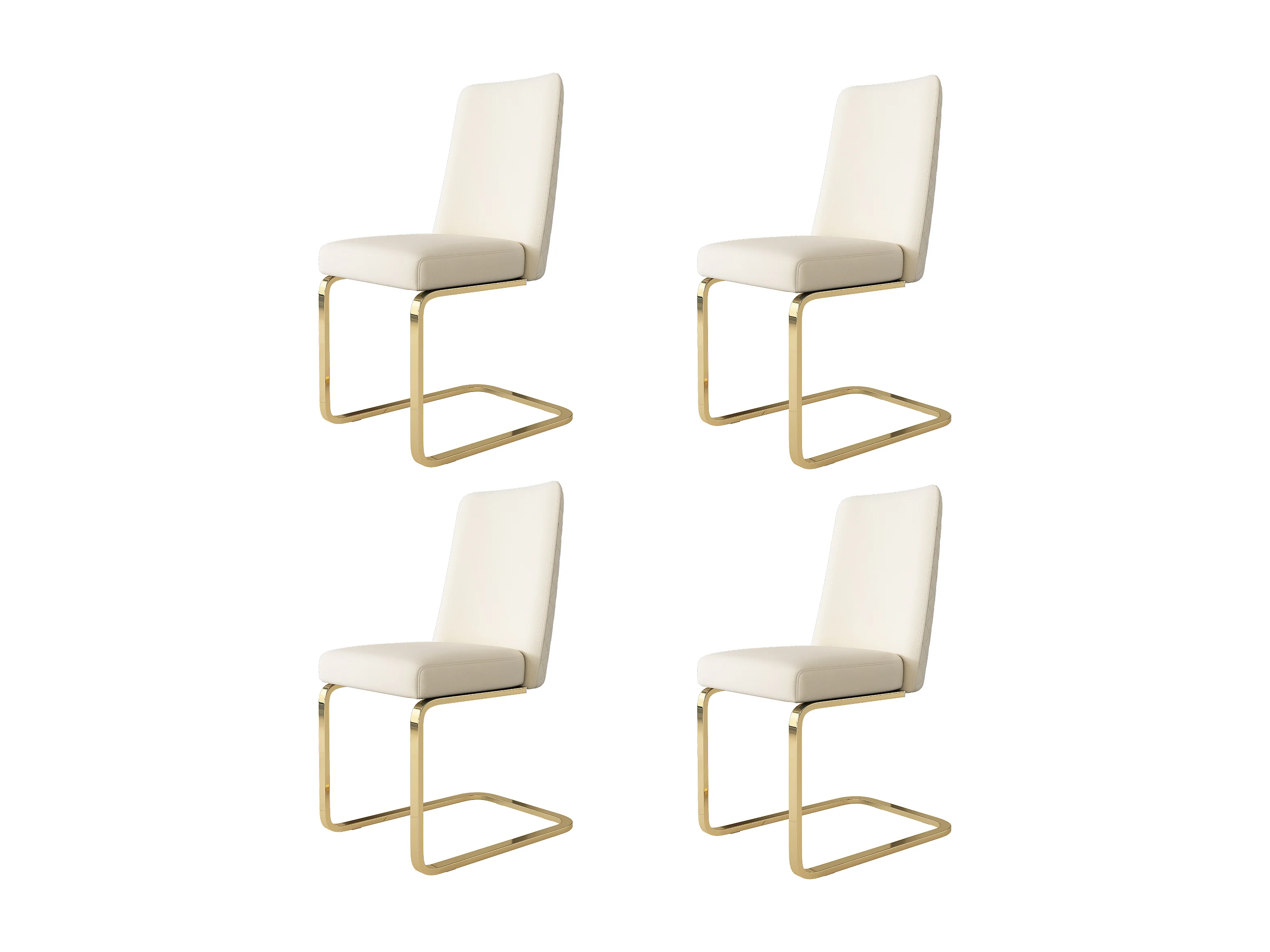 Set van 4 fluwelen eetkamerstoelen, luxe design, diamantvormige rugleuning, gouden metalen poten, beige (47x47x90 cm)