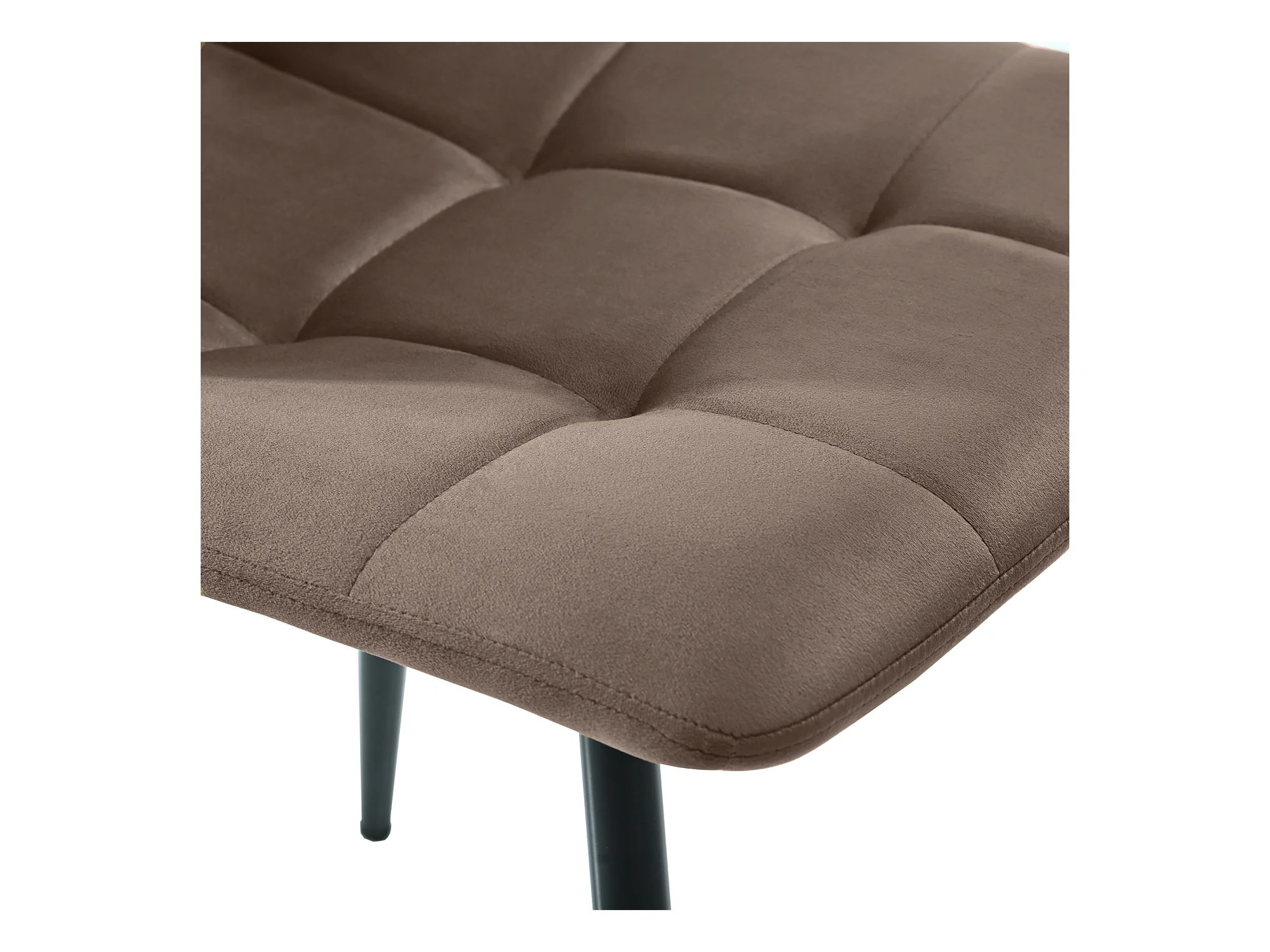 Set van 4 fluwelen eetkamerstoelen met gewatteerde rugleuning - zwarte metalen poten - bruin