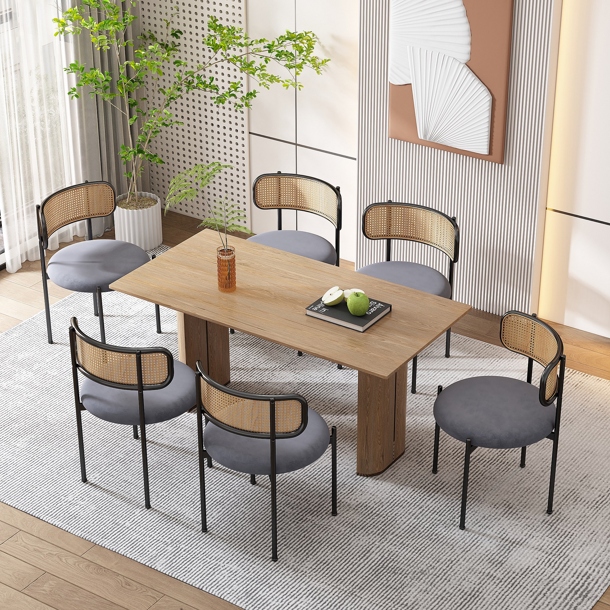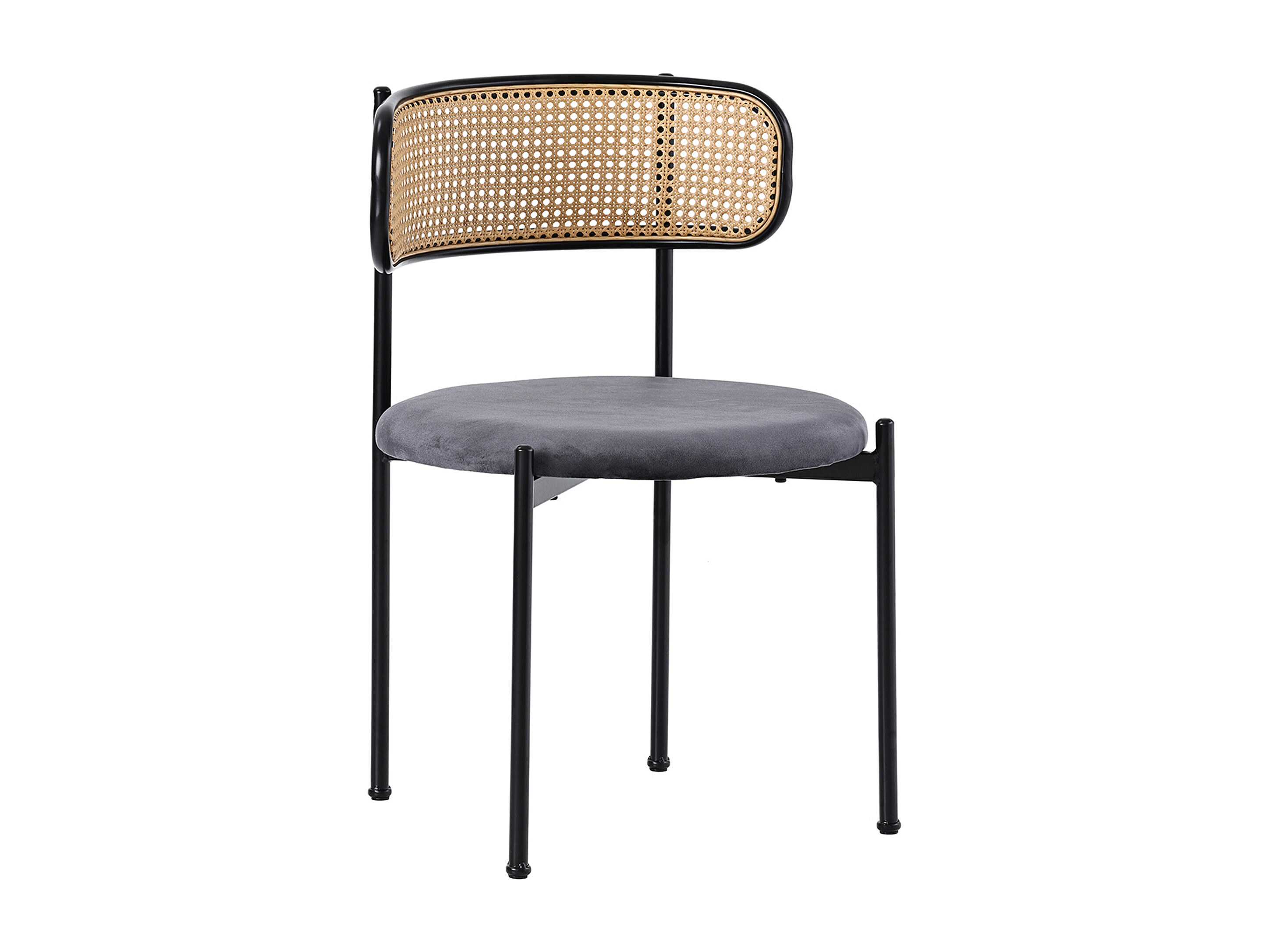 Set van 4 fluwelen eetkamerstoelen met rotan rugleuning - metalen poten - grijs