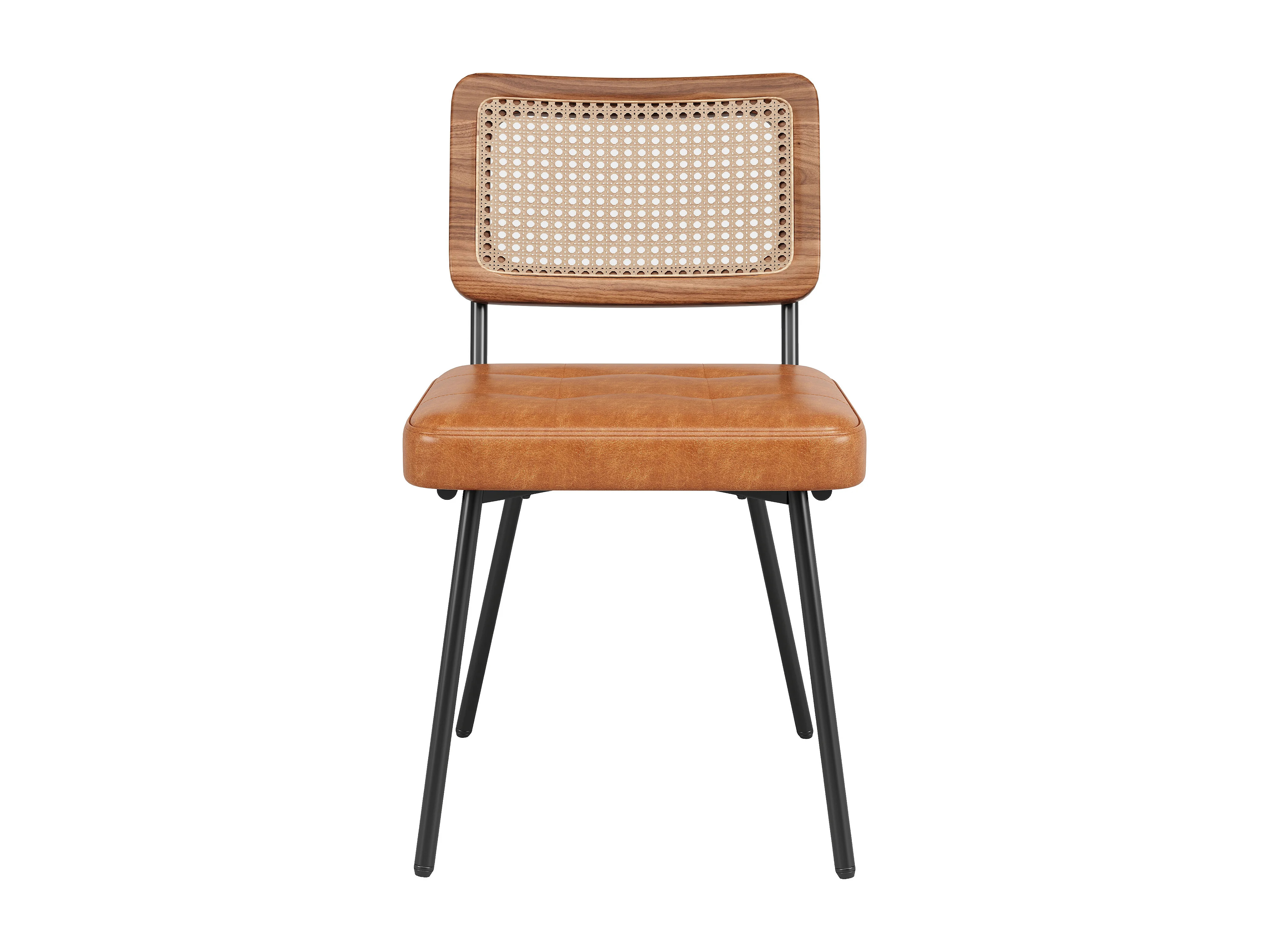 Set van 4 gestoffeerde eetkamerstoelen - van kunstleer en rotan - metalen frame - retro stijl - bruin