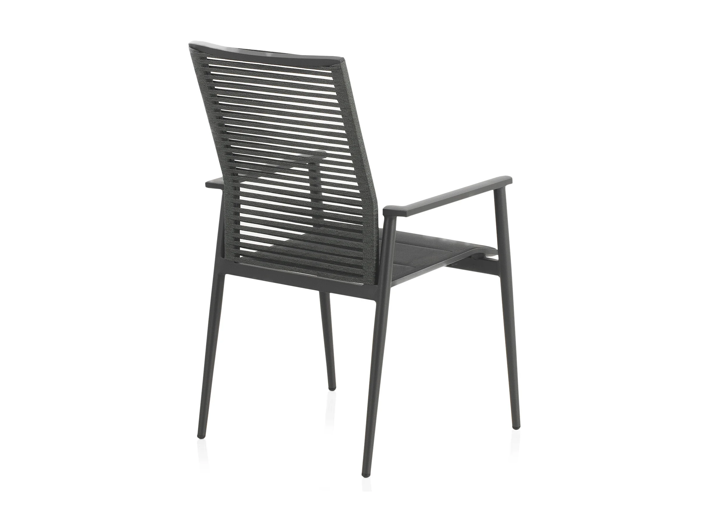 Set van 4 grijze aluminium fauteuils met groene touwrugleuning