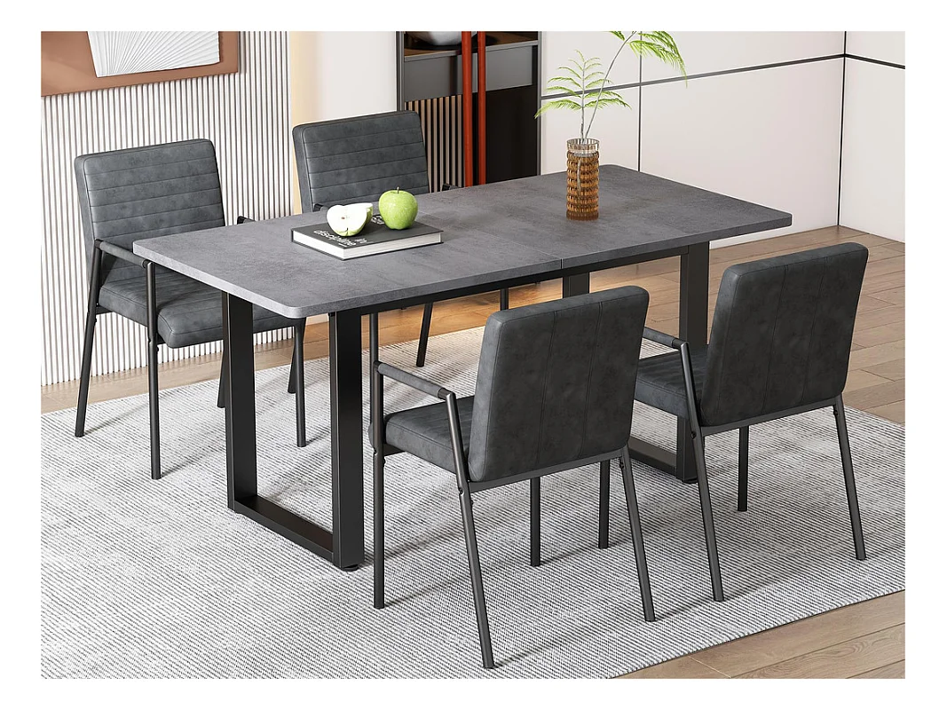 Eettafel 6 personen van mdf en metaal - Licht naturel en zwart - KOMONI