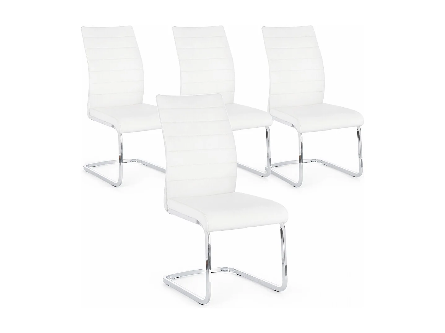 Set van 4 KYRA designstoelen – Kunstleer & verchroomde stalen poten-Kleur Wit